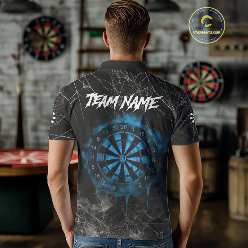 Black And Blue Grim Reaper Smoke Funny Dart Shirts For Men Custom Dart Jerseys, Darts Clothing TDM4005