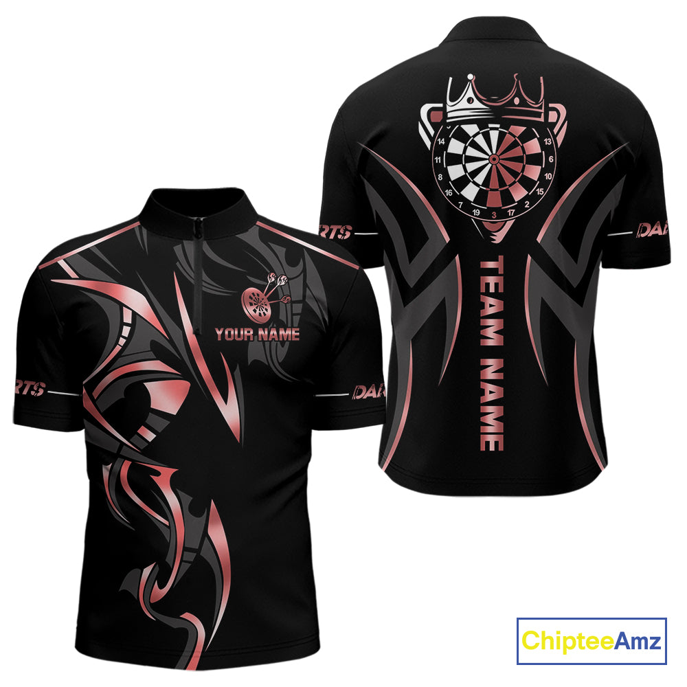 Black And Red Dartboard Crown Dart Shirts For Men Custom Dart Jersey Team Polo & Quarter Zip TDM4091