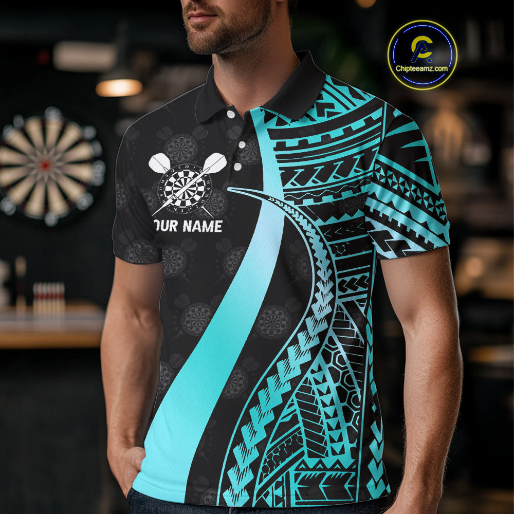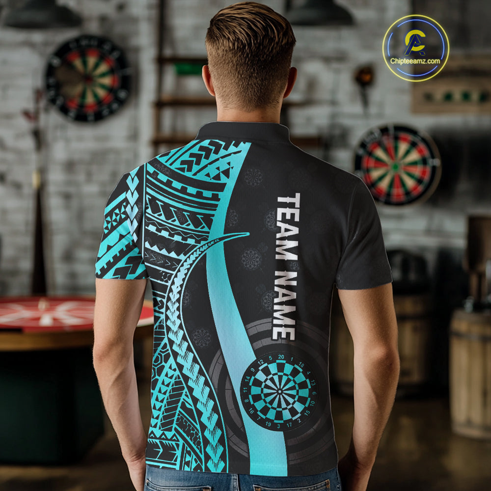 Personalized Black And Turquoise Tribal Dart Shirts For Men Custom Dart Jersey Team Polo & 1/4 Zip TDM4106