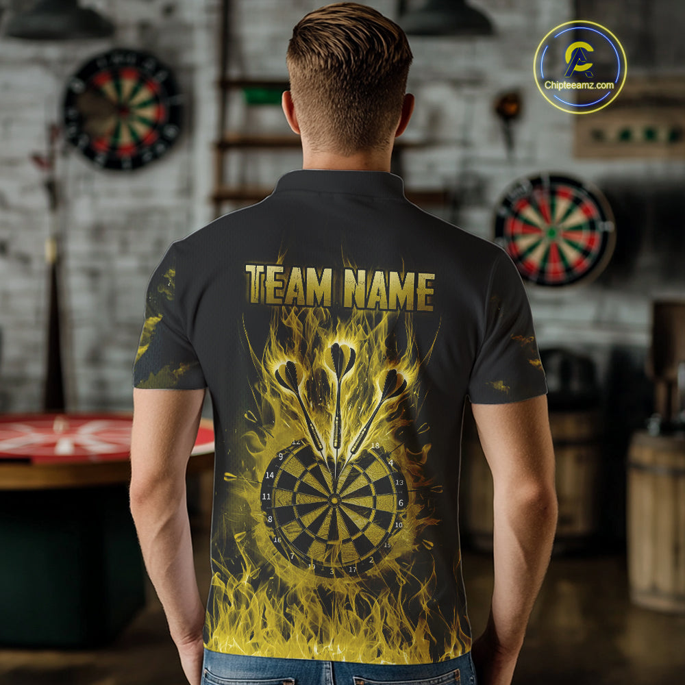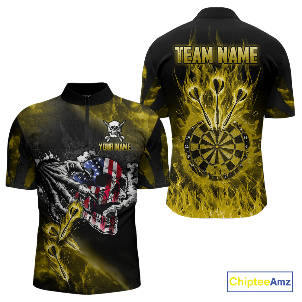 Fire Flame Darts Board American Flag Skull Dart Shirts For Men Custom Darts Team Jerseys |Yellow TDM4268