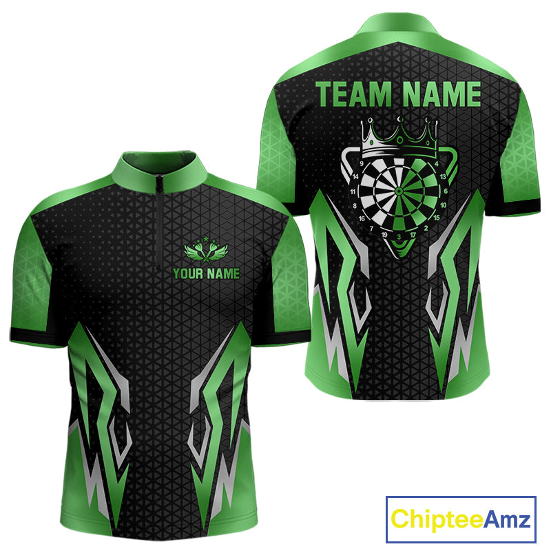 Black And Green Funny Crown Darts Shirt For Men Custom Darts Jerseys Team Polo & Quarter Zip TDM5017