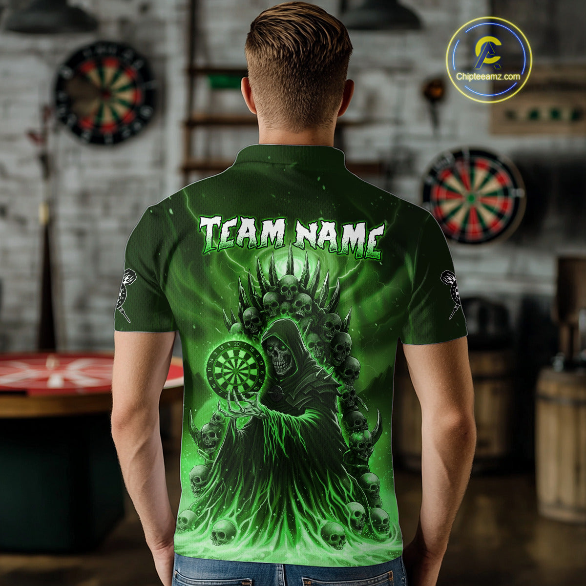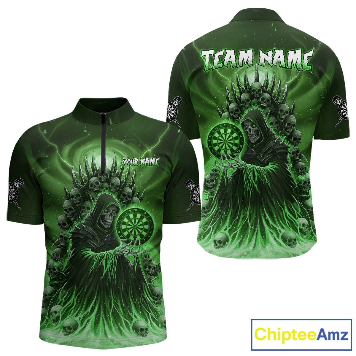 Personalized Green Grim Reaper Darts Jersey For Men Custom Skull Darts Team Polo & Quarter Zip TDM5060