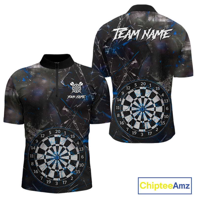 Personalized Blue Break Glass Darts Shirt For Men Custom Darts Team Jersey Polo & 1/4 Zip TDM5103