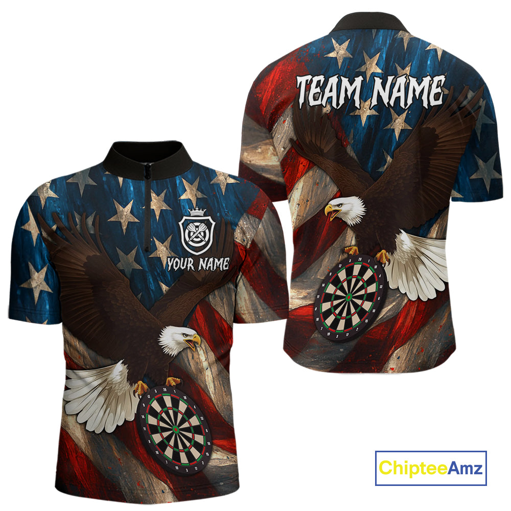 Personalized American Flag Eagle Mens Darts Shirt Custom Patriotic Jersey Darts Polo & 1/4 Zip TDM5126