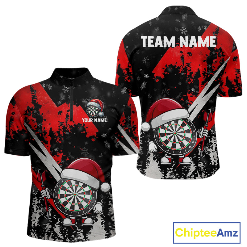 Grunge Black And Red Funny Santa Dartboard Custom Christmas Darts Shirt For Men, Darts Gifts TDM5147