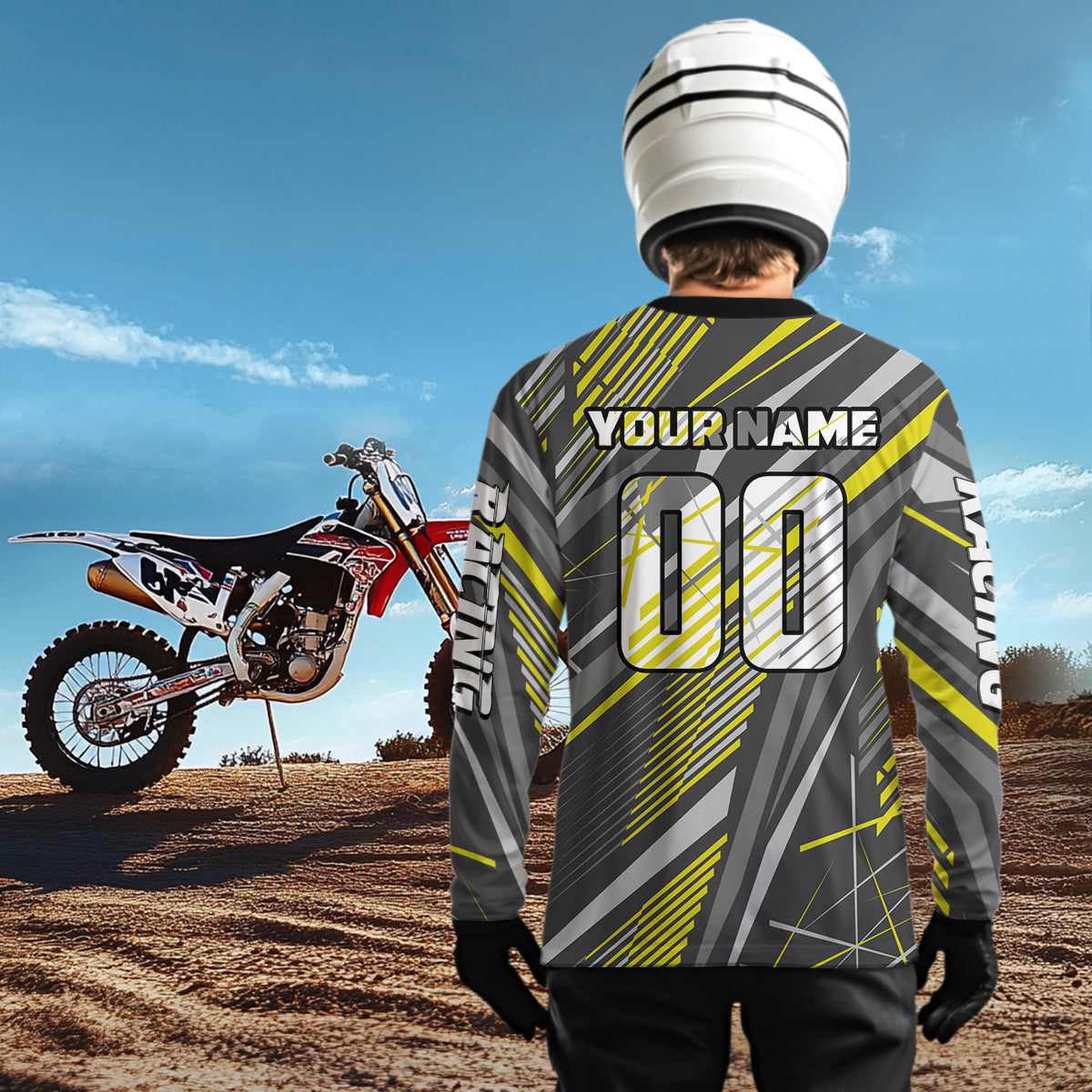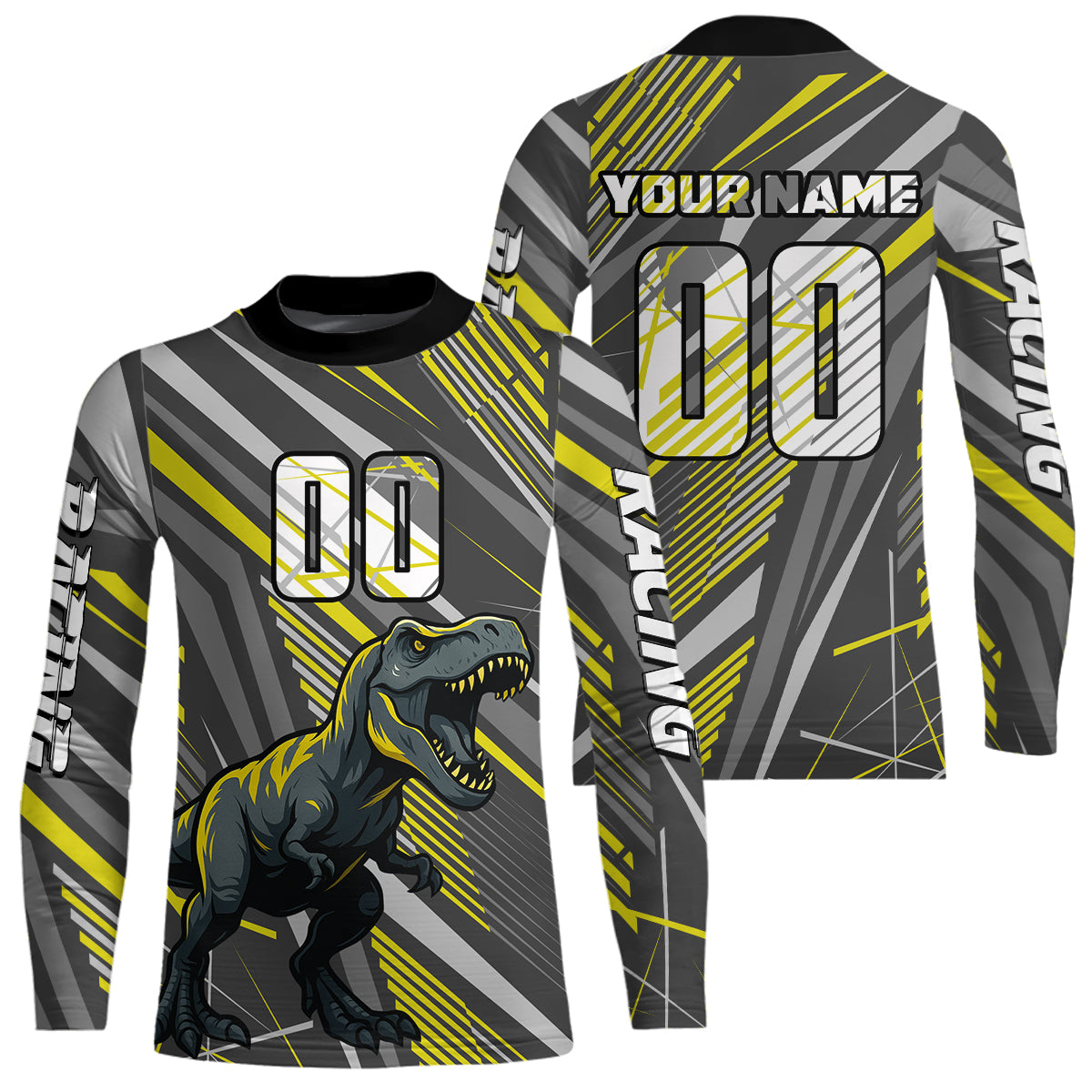 Dinosaur Motocross Jersey Yellow&Grey Dirt Bike Jersey for Men Kid Women Upf30+ XM349