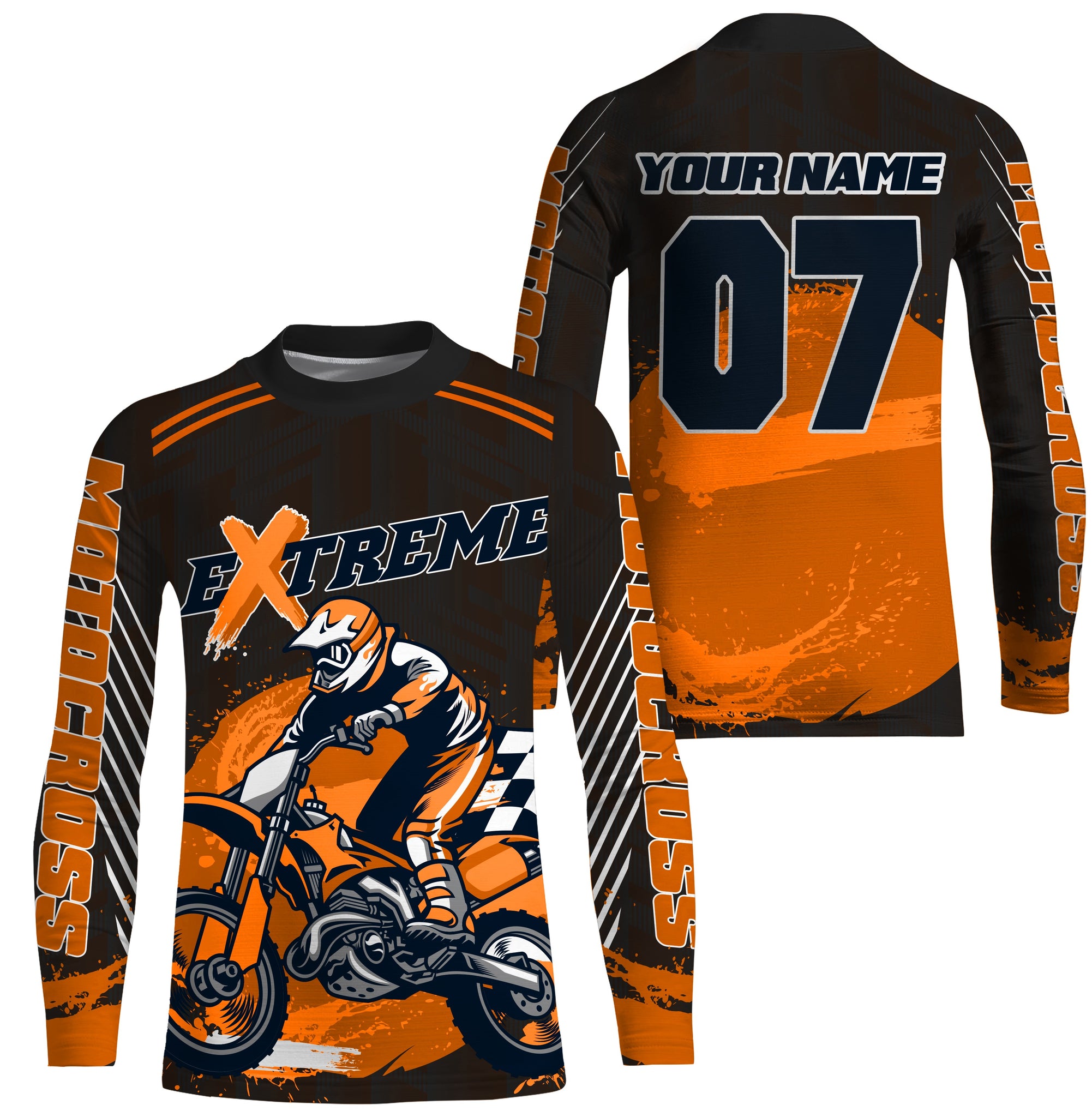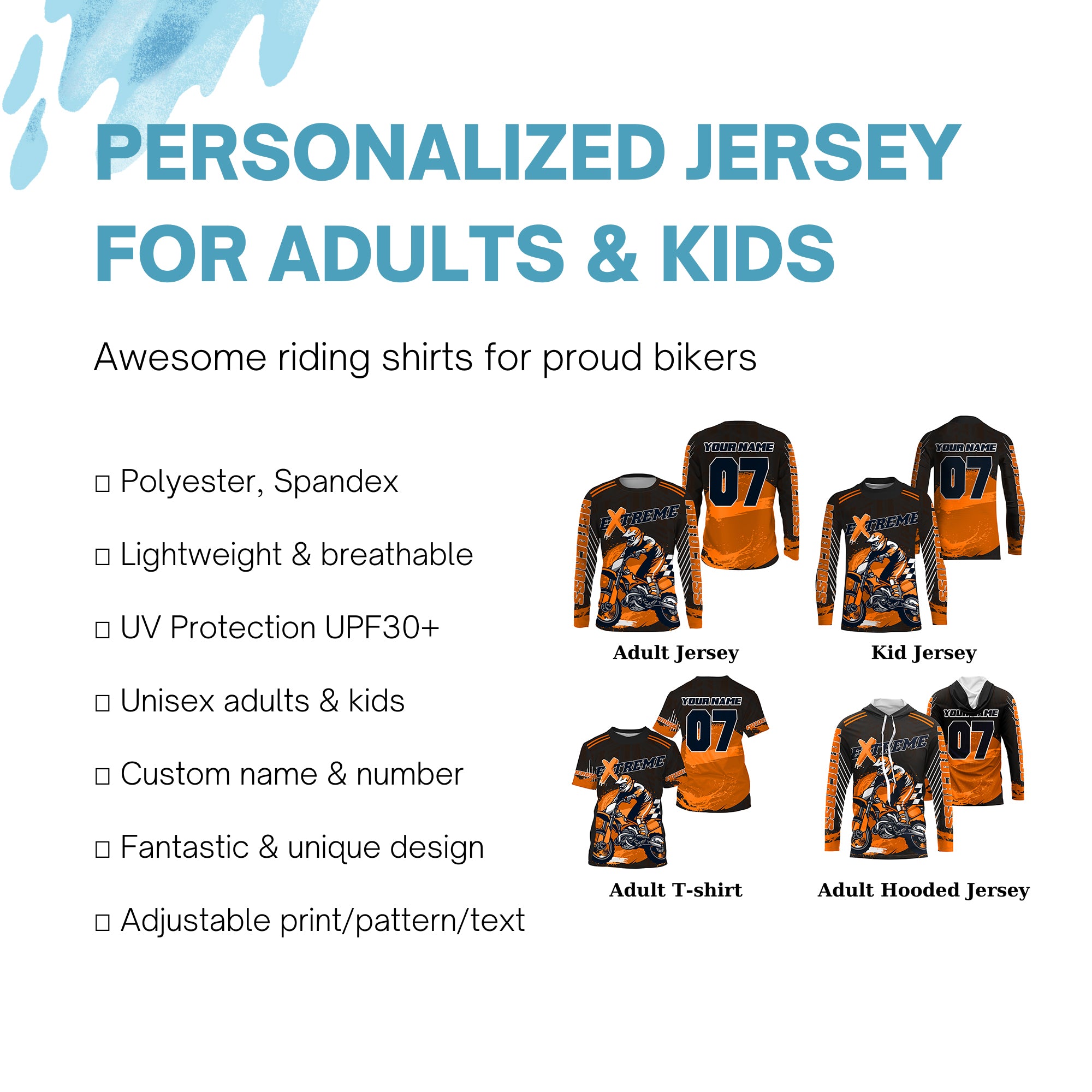 Kid adult youth custom orange UPF30+ Motocross jersey extreme racing MX Off-Road Motorcycle PDT38