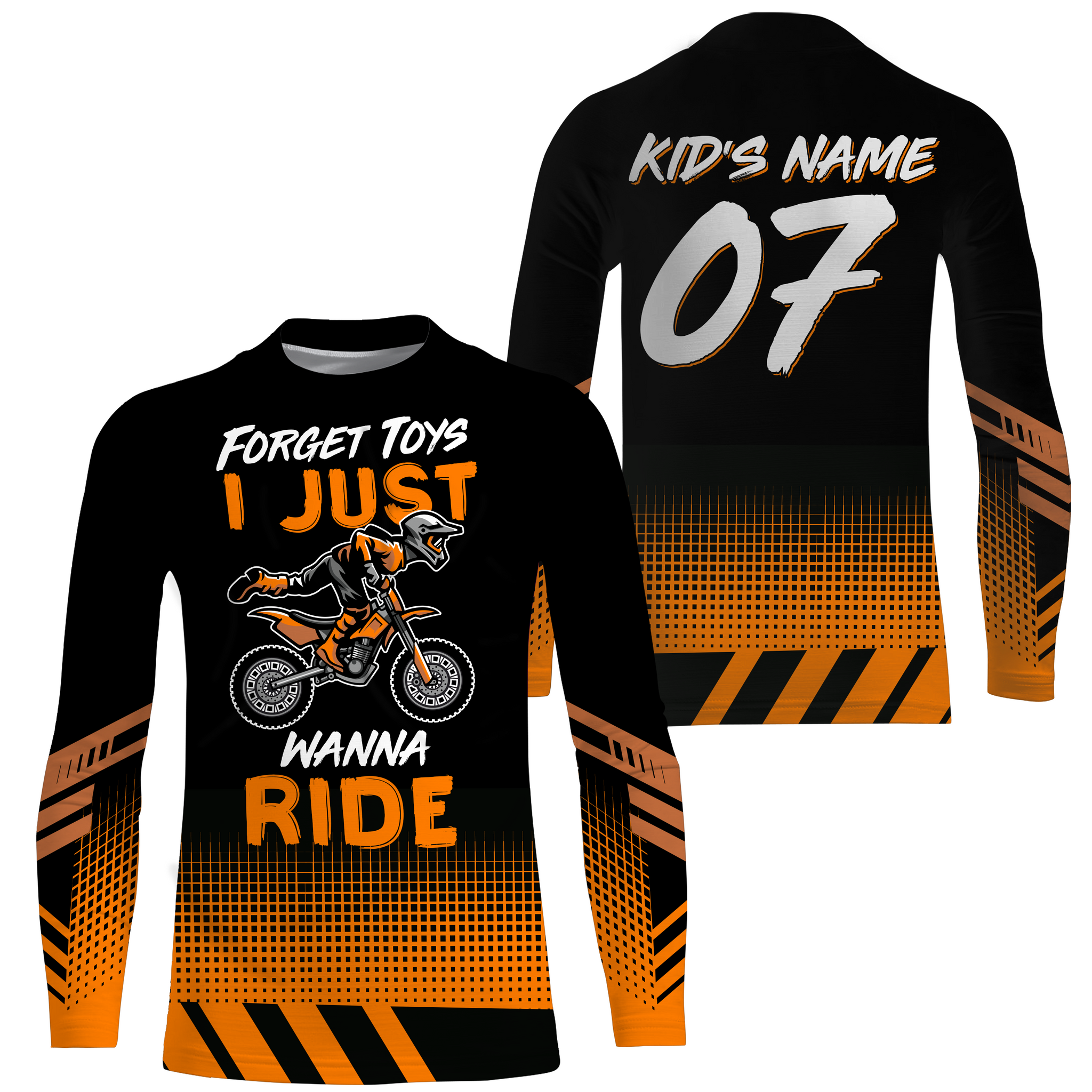 Kid Custom Motocross Jersey Forget Toys I Just Wanna Ride Dirt Bike UPF30+ Youth Racing Motorcycle NMS954