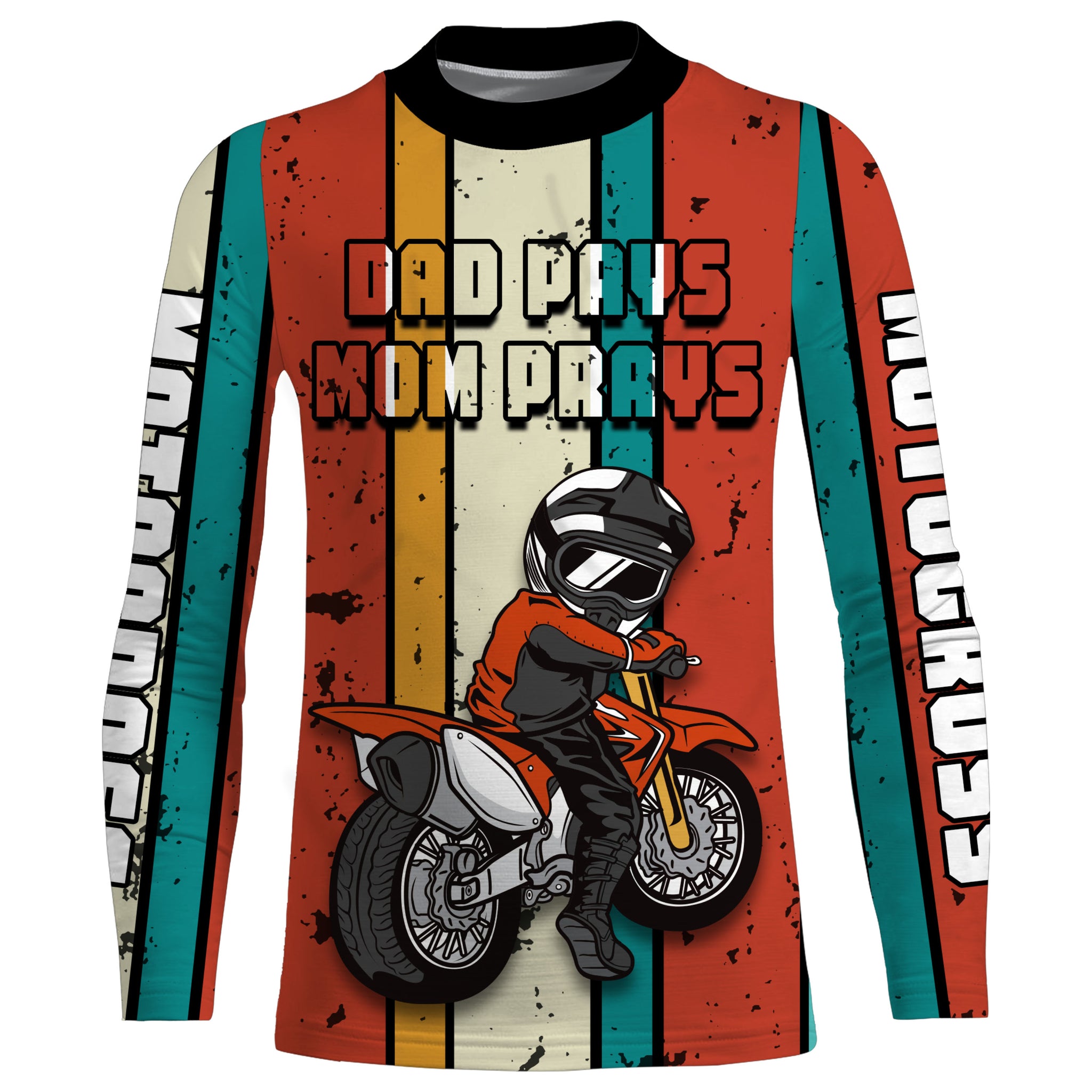 Kid custom motocross jersey Dad Pays Mom Prays UPF30+ youth dirt bike racing motorcycle junior ride NMS953