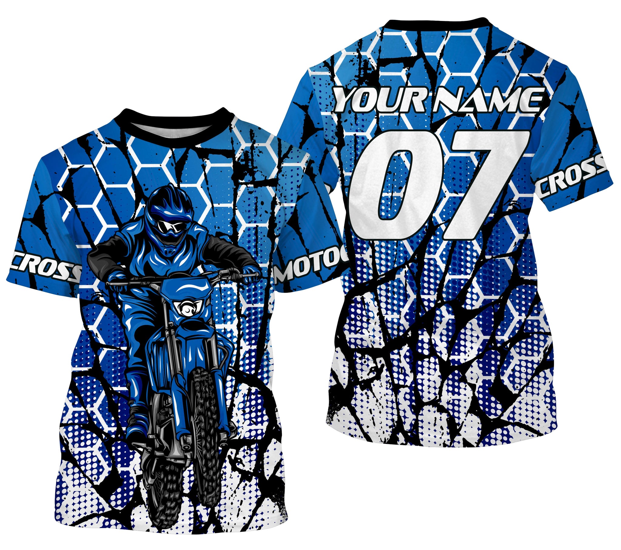 Motocross Racing Personalized Jersey UPF30+ Adults & Kid Dirt Bike Motorcycle Off-road MX Riders Blue| NMS681