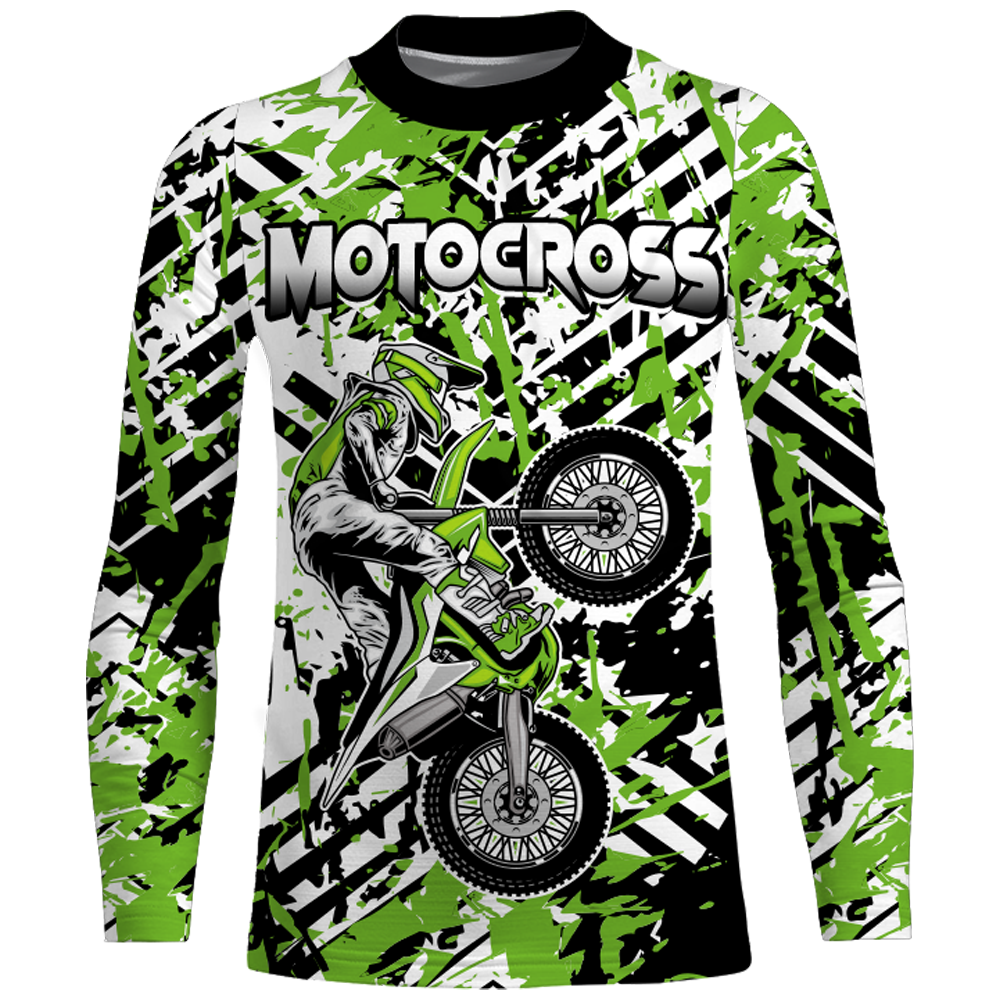 Motocross Racing Personalized Jersey Youth UPF30+ Green Dirt Bike Motorcycle Off-Road XM137