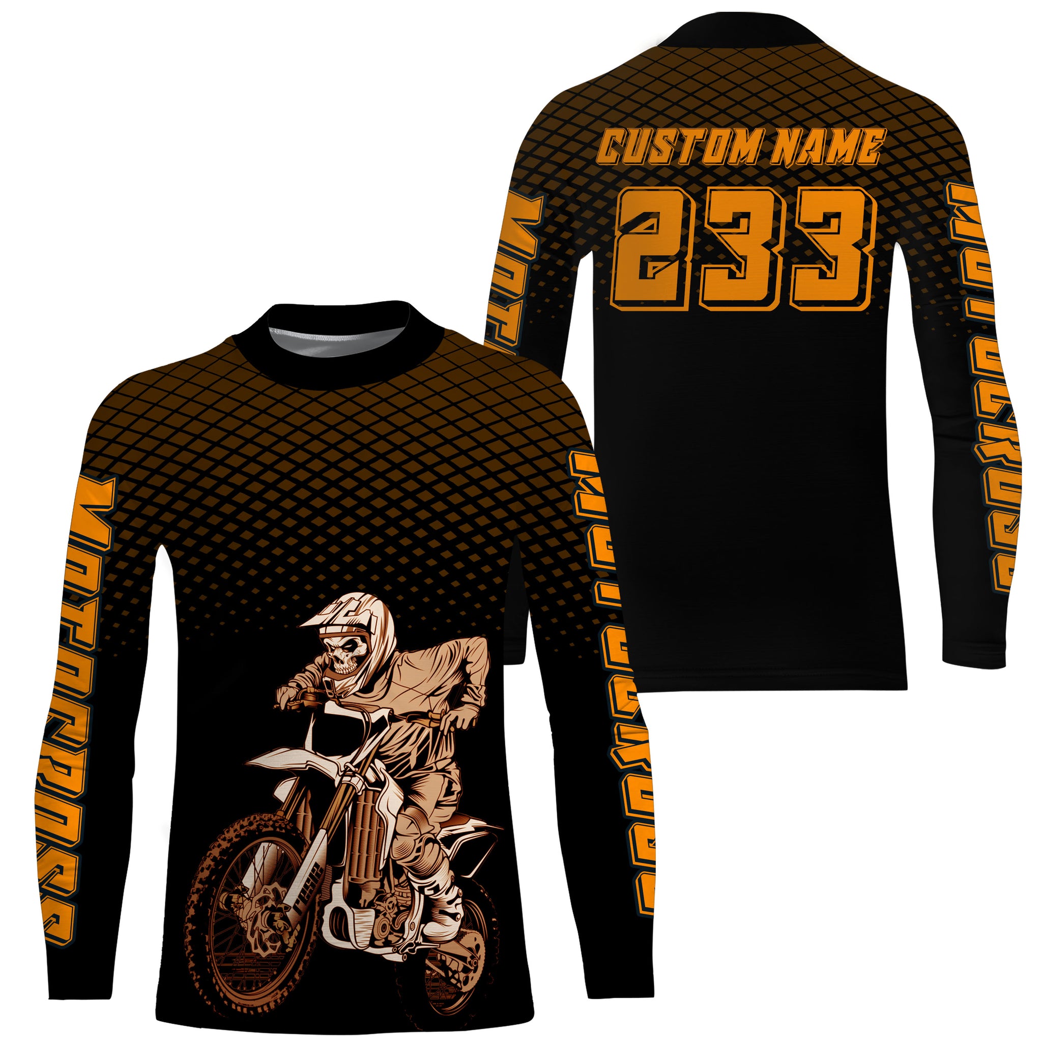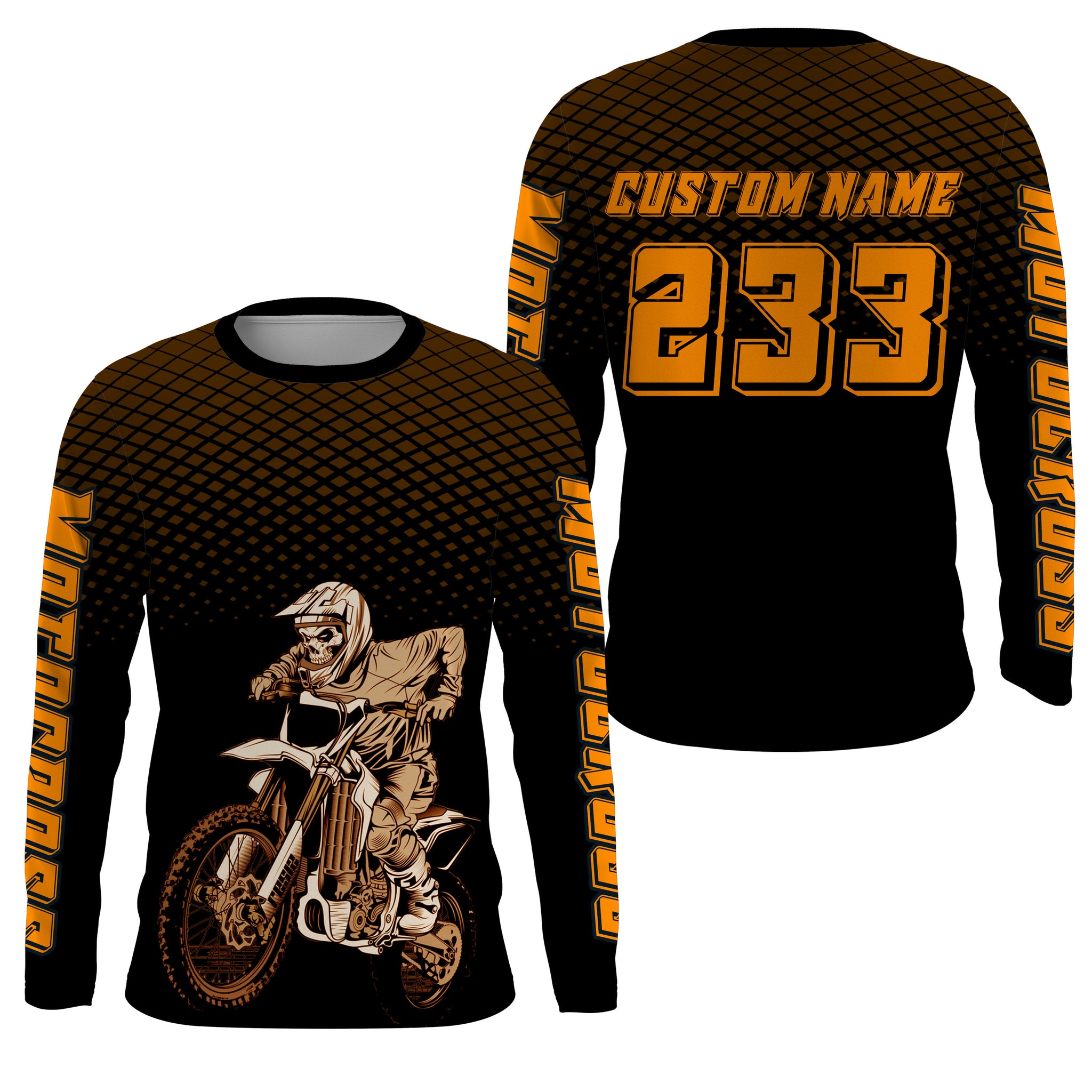 - PERSONALIZED MOTOCROSS JERSEY: This super cool long-sleeved shirt is exactly what all bikers are looking for. Add your name/number to make it a unique one that bears your own imprints.
