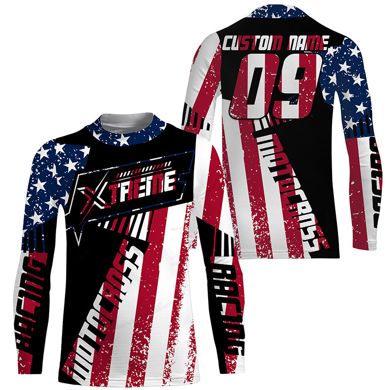 Patriotic Motocross Jersey Personalized UPF30+ Extreme MX Racing Motorcycle American Flag NMS1147