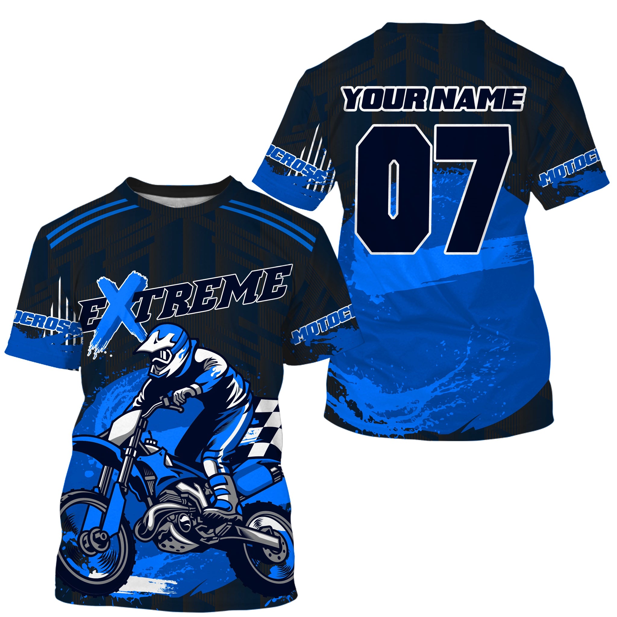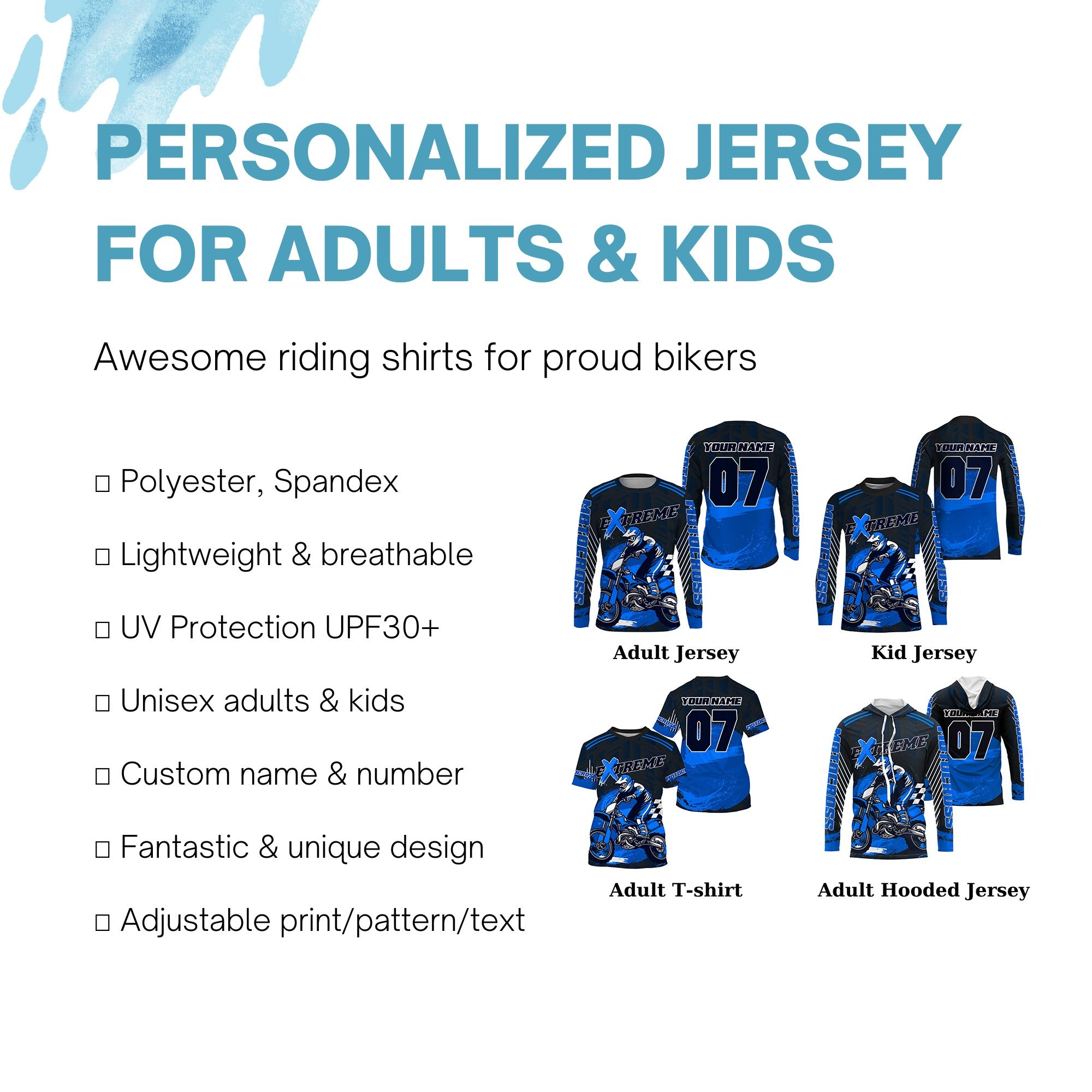 Personalized blue UPF30+ Motocross riding jersey extreme MX racing dirt bike off-road motorcycle PDT39