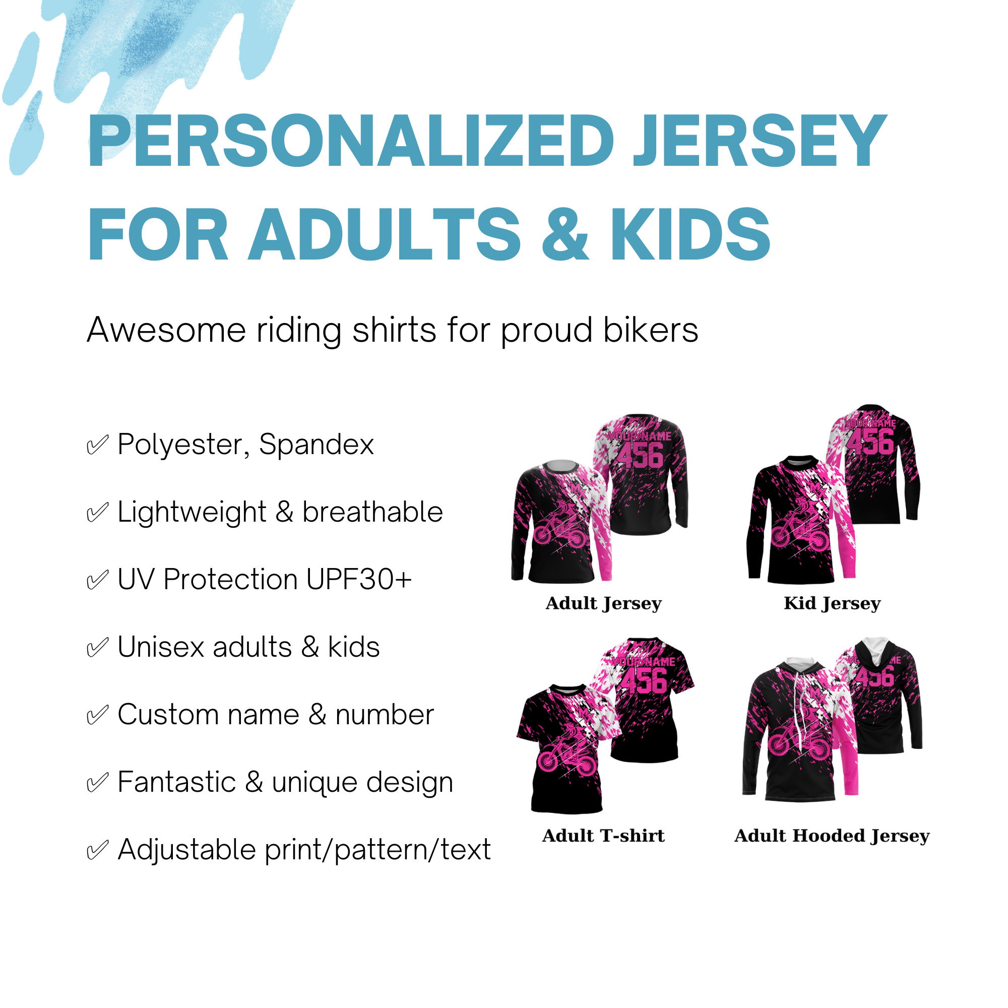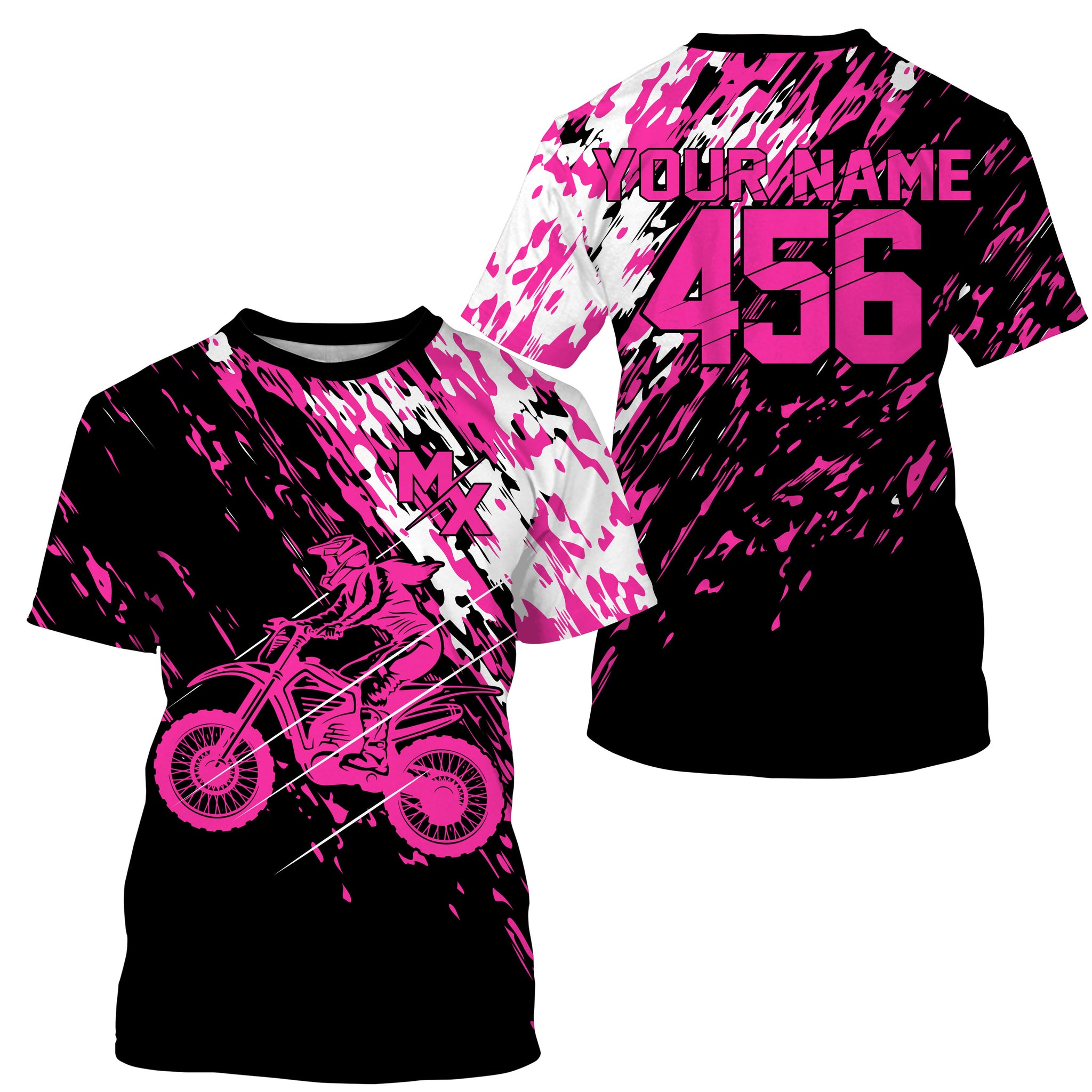 Personalized dirt bike jersey adult&kid UPF30+ Motocross biker girl MX racing off-roading - Pink| NMS910