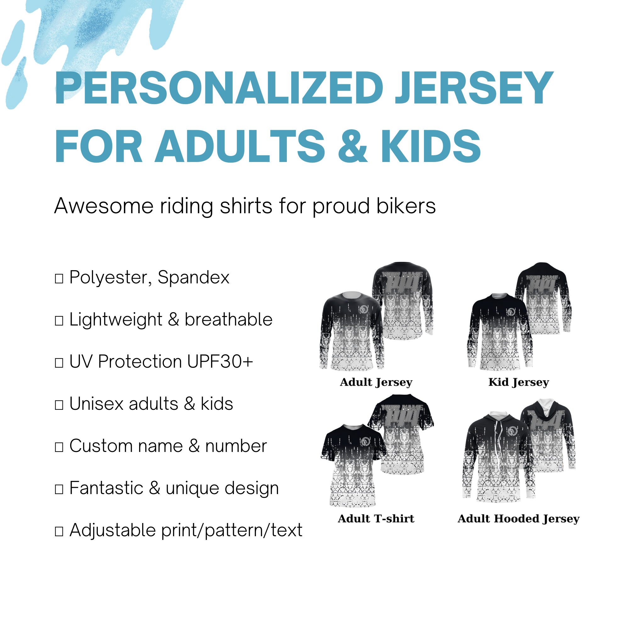 Personalized Motocross Jersey UPF30+ MX Racing Off-Road Adult&Kid Riders Dirt Bike Jersey - Grey| NMS752