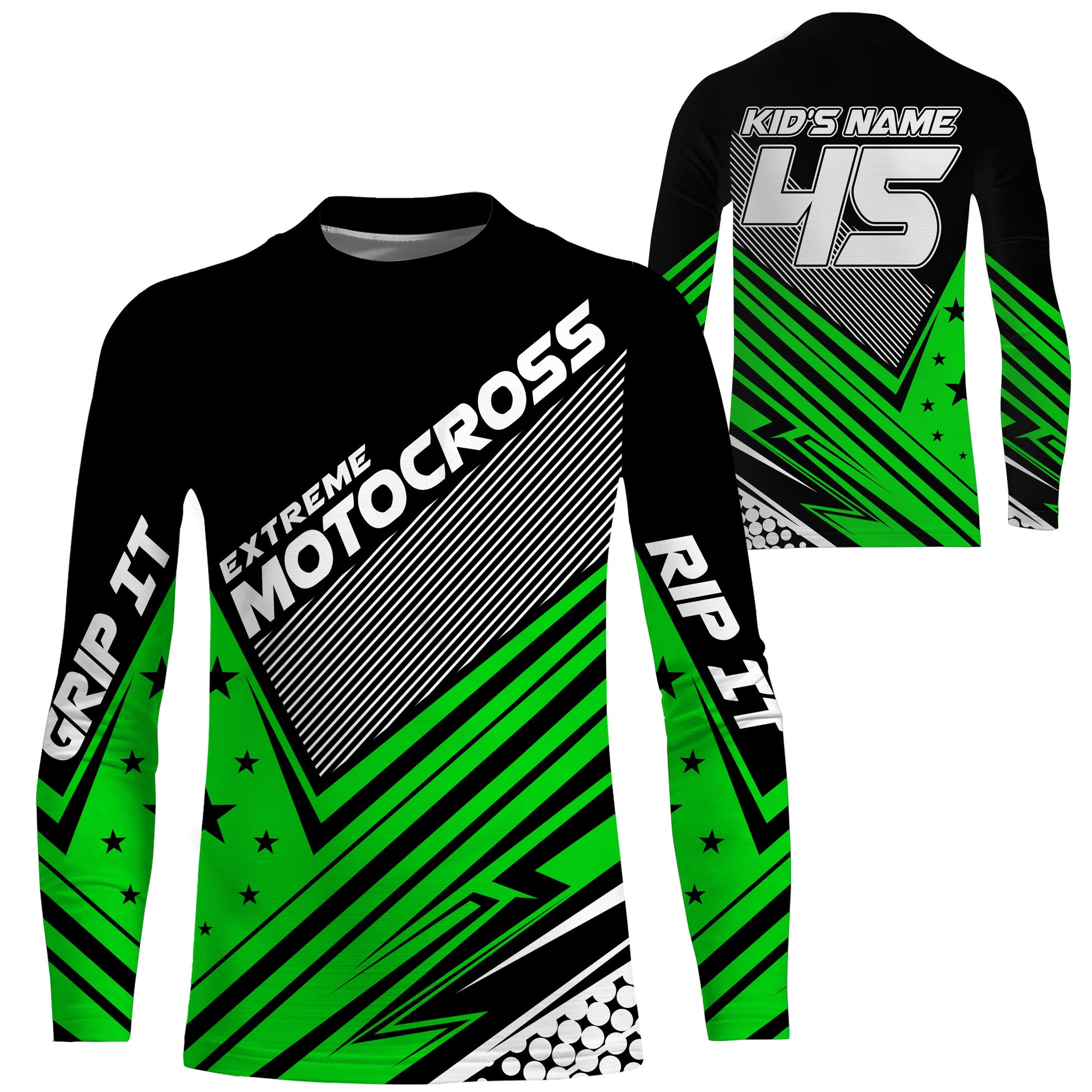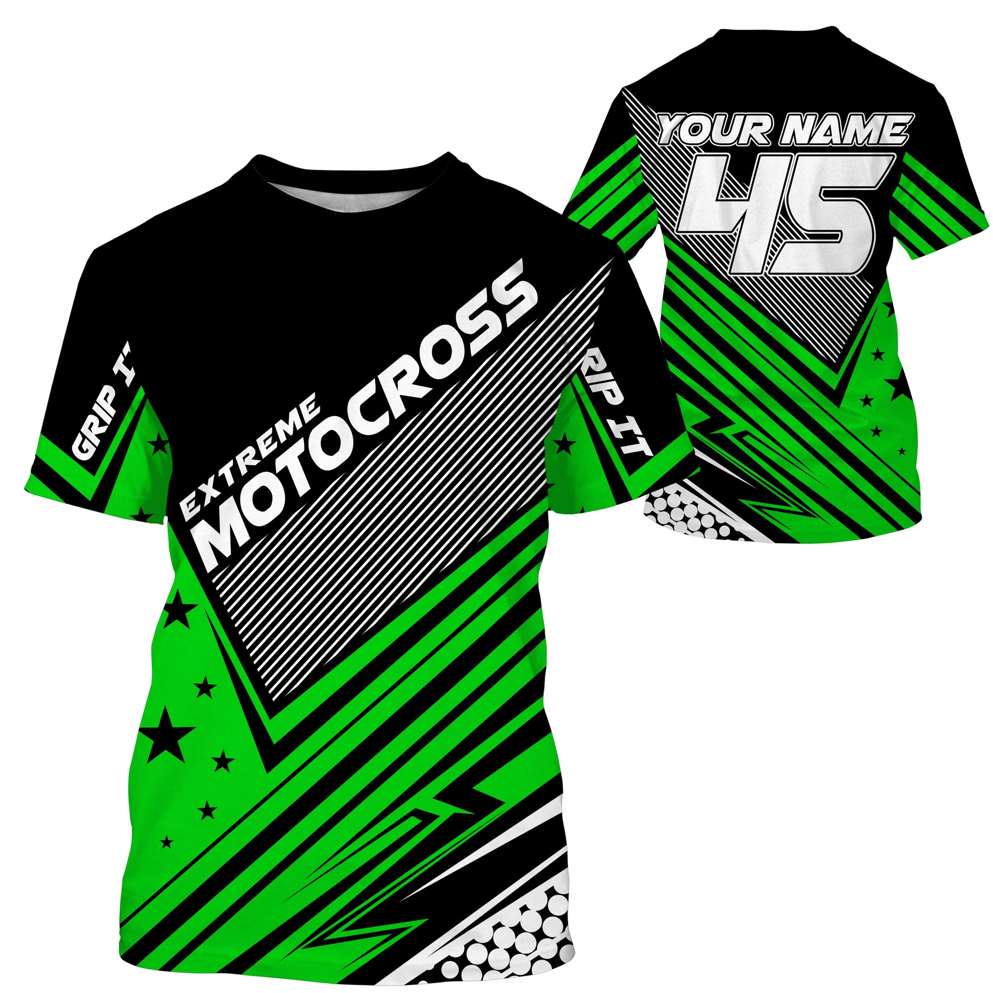 Personalized Motocross Racing Jersey UPF30+ Adults & Kid Star Green Dirt Bike MX Motorcycle Off-road| NMS683