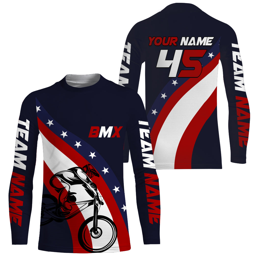 Personalized Patriotic BMX Racing Jersey UPF30+ US Bicycle Motocross Tire Track American Off-Road Adult&Kid Jersey|LUT05