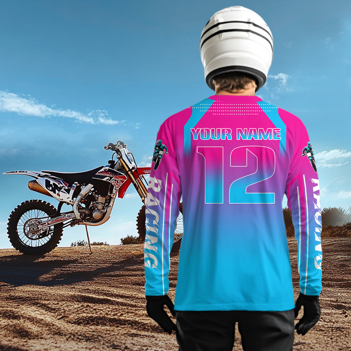 • PERSONALIZED MOTOCROSS JERSEY: This super cool long-sleeved shirt is exactly what all bikers are looking for. Add your name/number to make it a unique one that bears your own imprints.