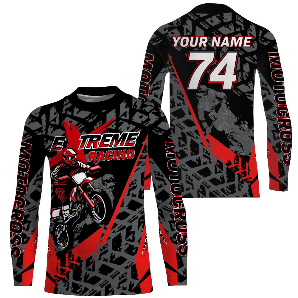 Red Motocross Racing Jersey Youth Men Kid UPF30+ Dirt Bike Motorcycle Riding Off-Road XM139