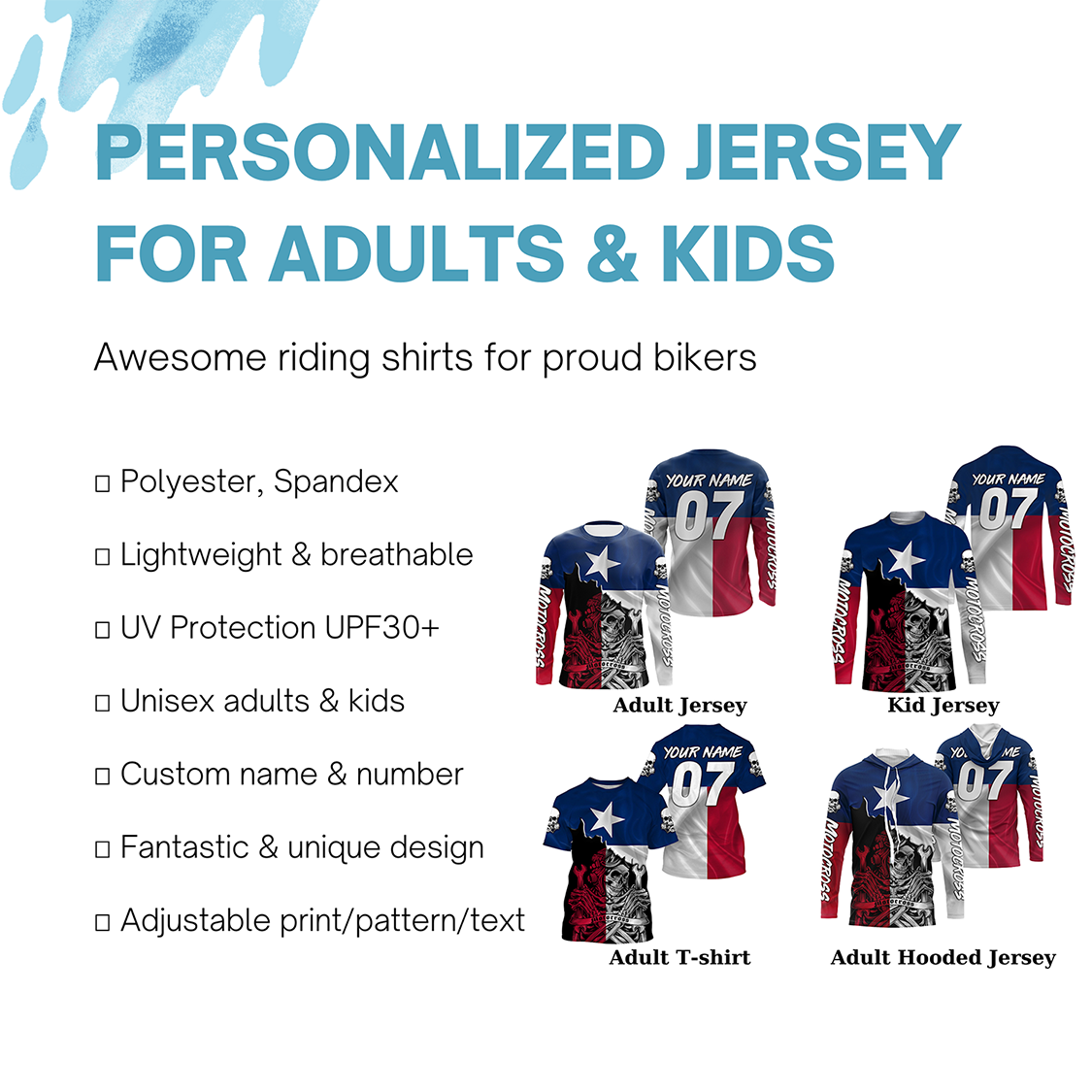 TX Texas flag motocross jersey custom name number UPF30+ adult&kid MX racing motorcycle racewear NMS959