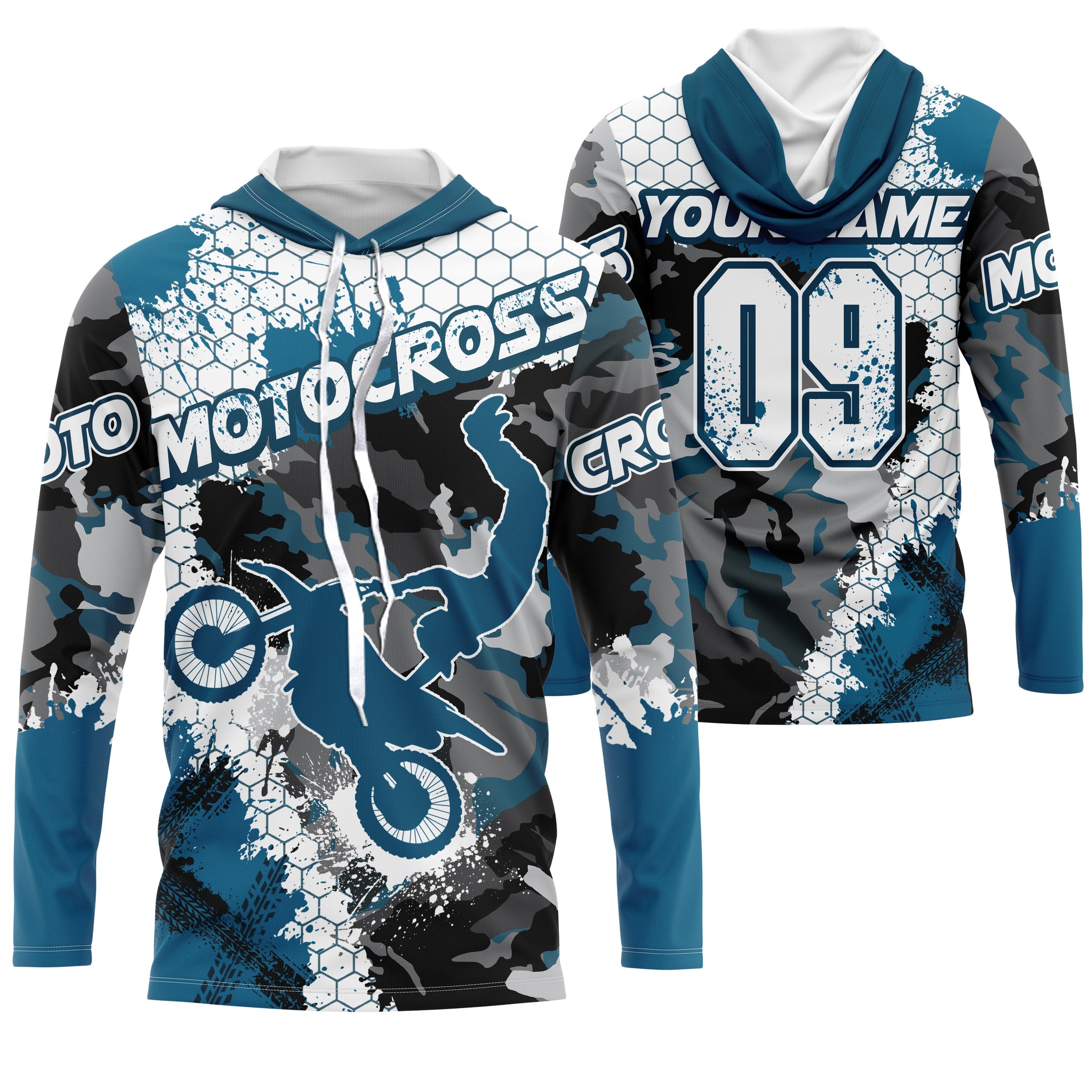 Women men kid custom Motocross jersey UPF30+ blue camo MX extreme biker racing off-road motorcycle PDT74