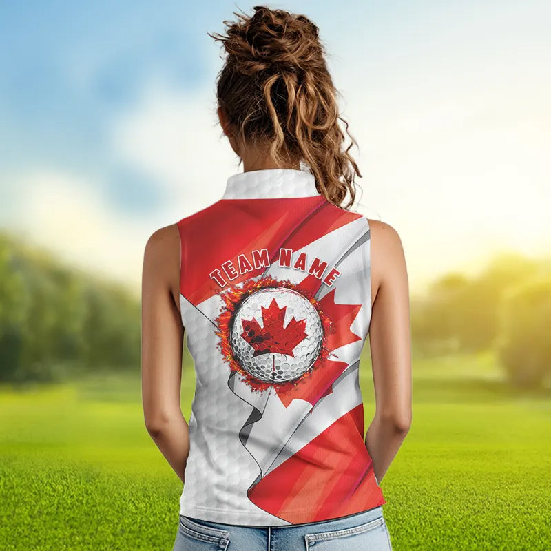 Canadian flag Women Sleeveless Golf polo shirts custom white team patriotic golf shirts ladies NQS9657
