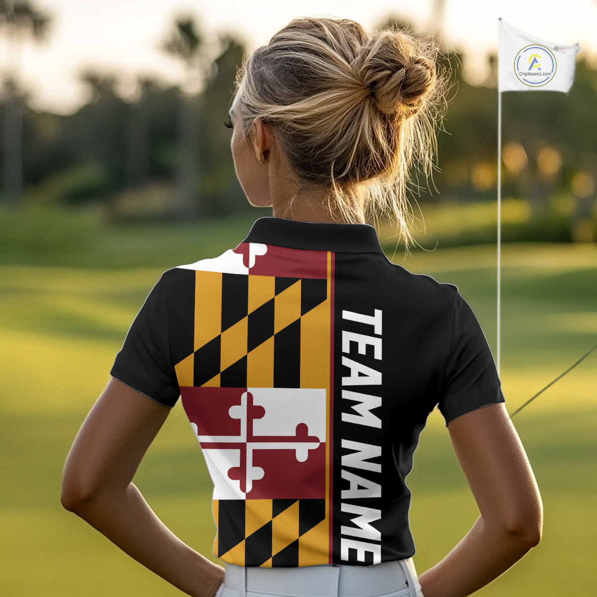 Maryland Flag black Women golf polo shirt Custom Patriotic Ladies Golf attire For team, golfing gifts NQS10188