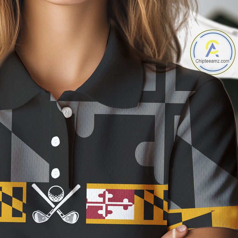 Maryland Flag black Women golf polo shirt Custom Patriotic ladies Golf top, gifts for golf lovers NQS10195