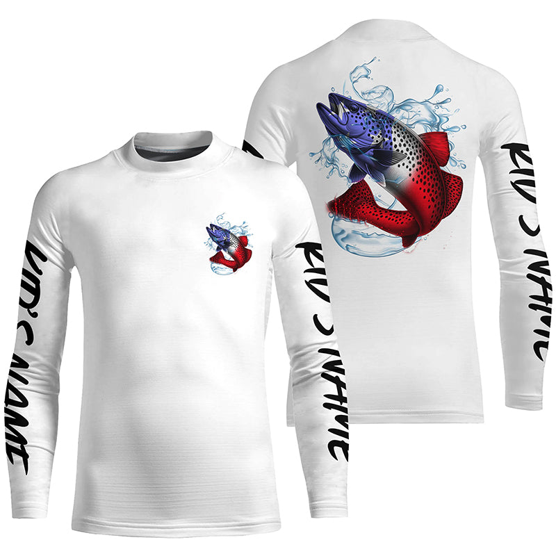 Personalized American Flag Speckled Trout Fishing Shirts, Patriotic Trout Long Sleeve Fishing Shirts IPHW6276