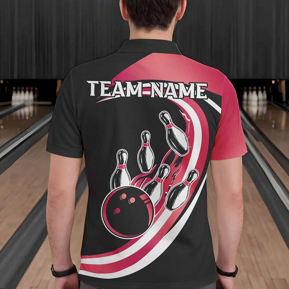 Black and Pink Bowling Polo, 1/4 Zip Shirt For Men Custom Bowling Team League Jersey, Gift For Bowler NQS9491