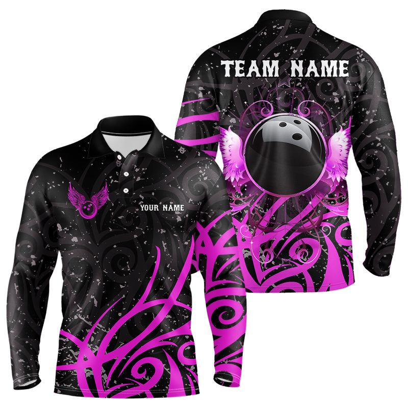 Black and Pink Camo Bowling Polo, Quarter Zip Shirts For Men Custom Team Bowling Jersey bowlers outfit NQS9035