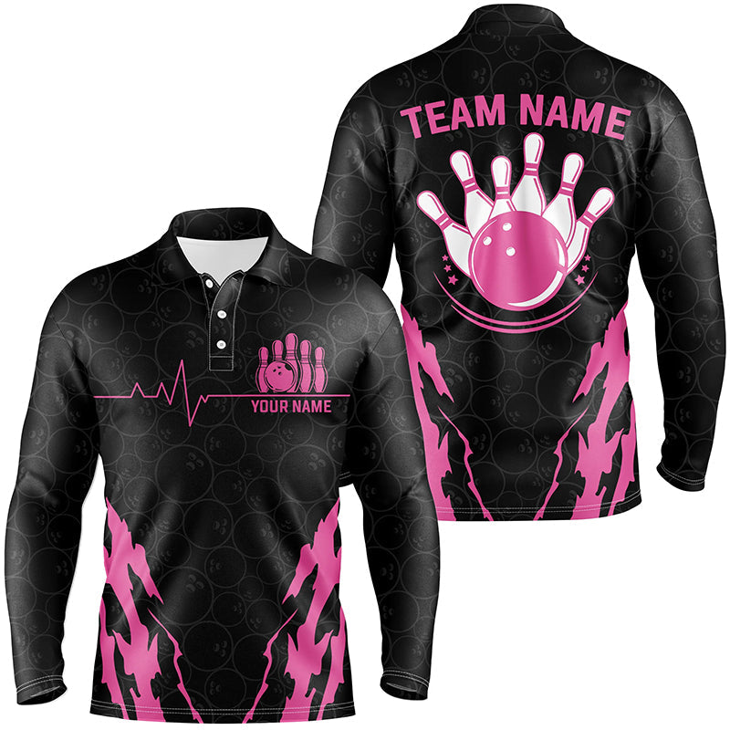 Black Bowling Camo Polo, Quarter zip Shirt for men cool custom jerseys for team bowlers | Pink NQS8388