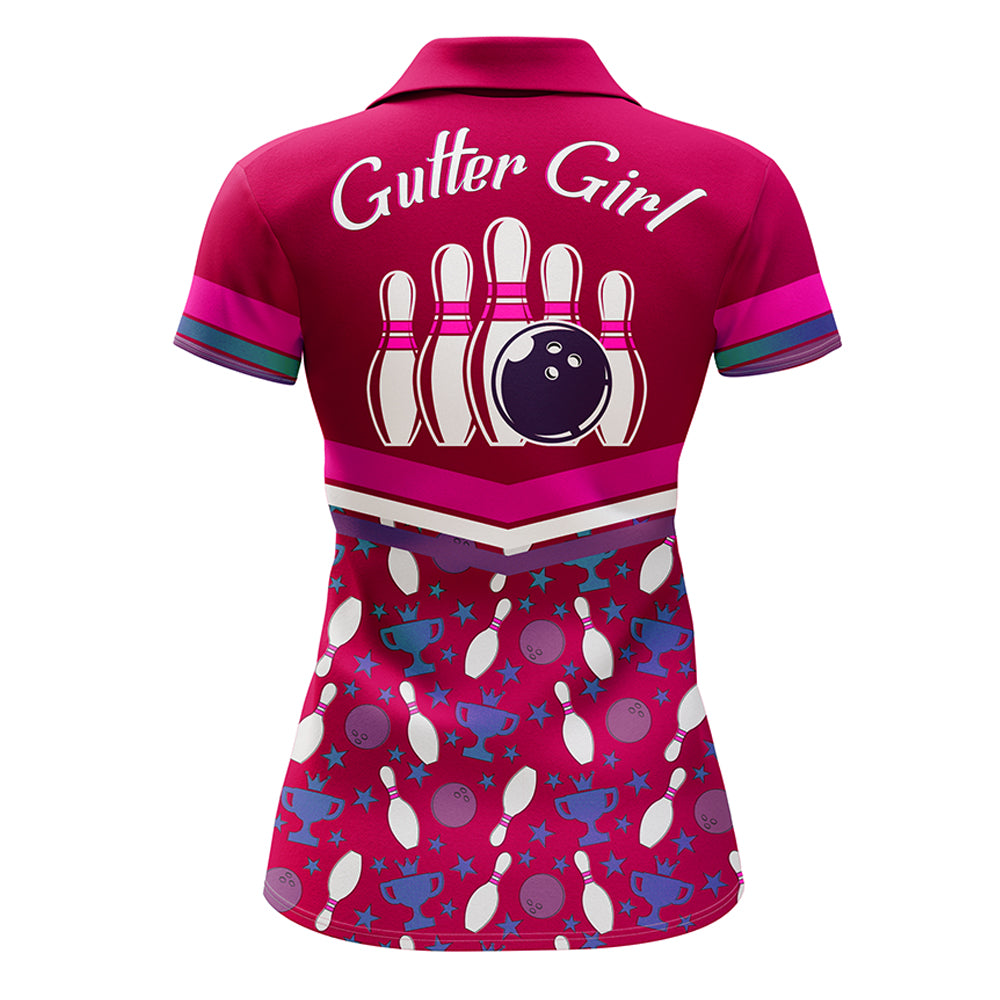 Polo Bowling Shirt for Women, Gutter Girl Pink Personalized Bowlers Jersey Short Sleeve NBP138