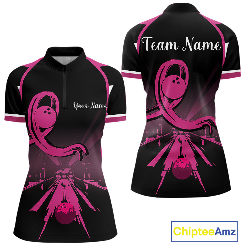 Breast Cancer Awareness Bowling Shirts For Women custom Black and pink ribbon team bowling jerseys NQS10207