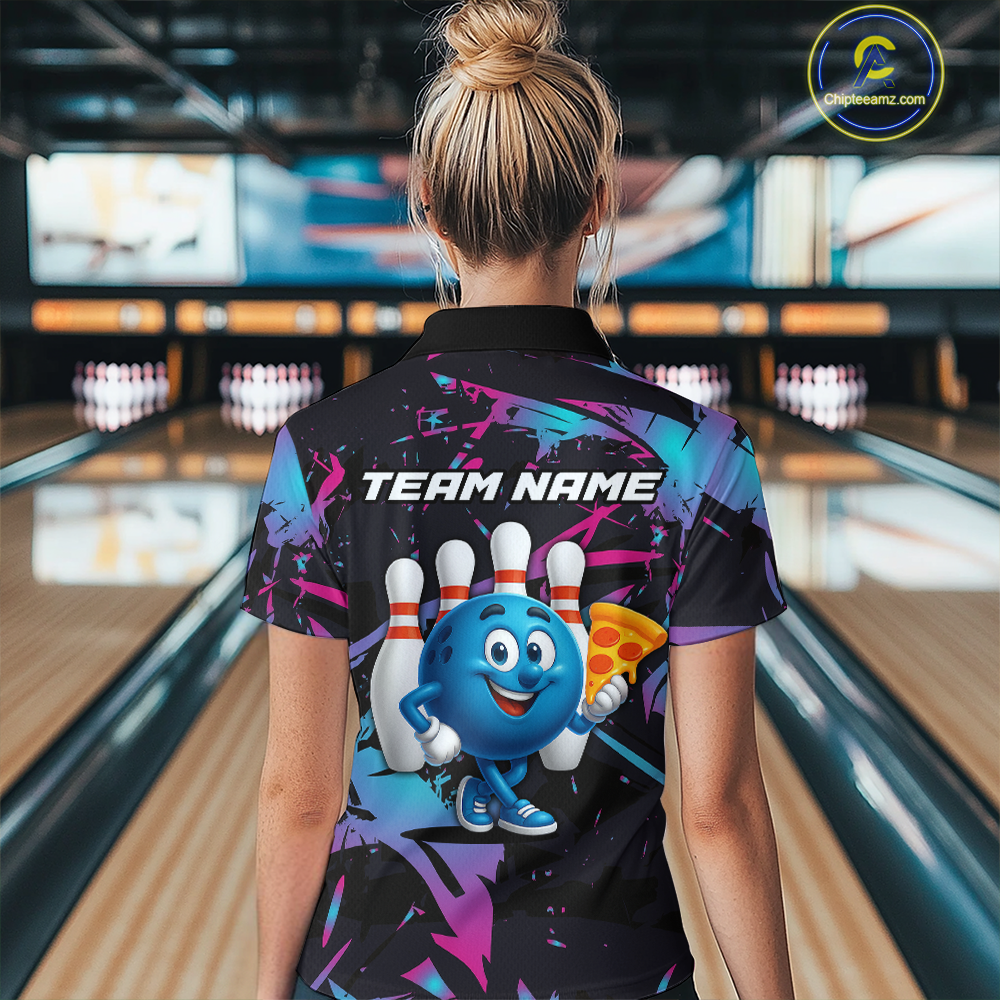 Custom Blue & Pink Funny Bowling with Food for Women Bowling Shirt Polo & 1/4 Zip QZT797