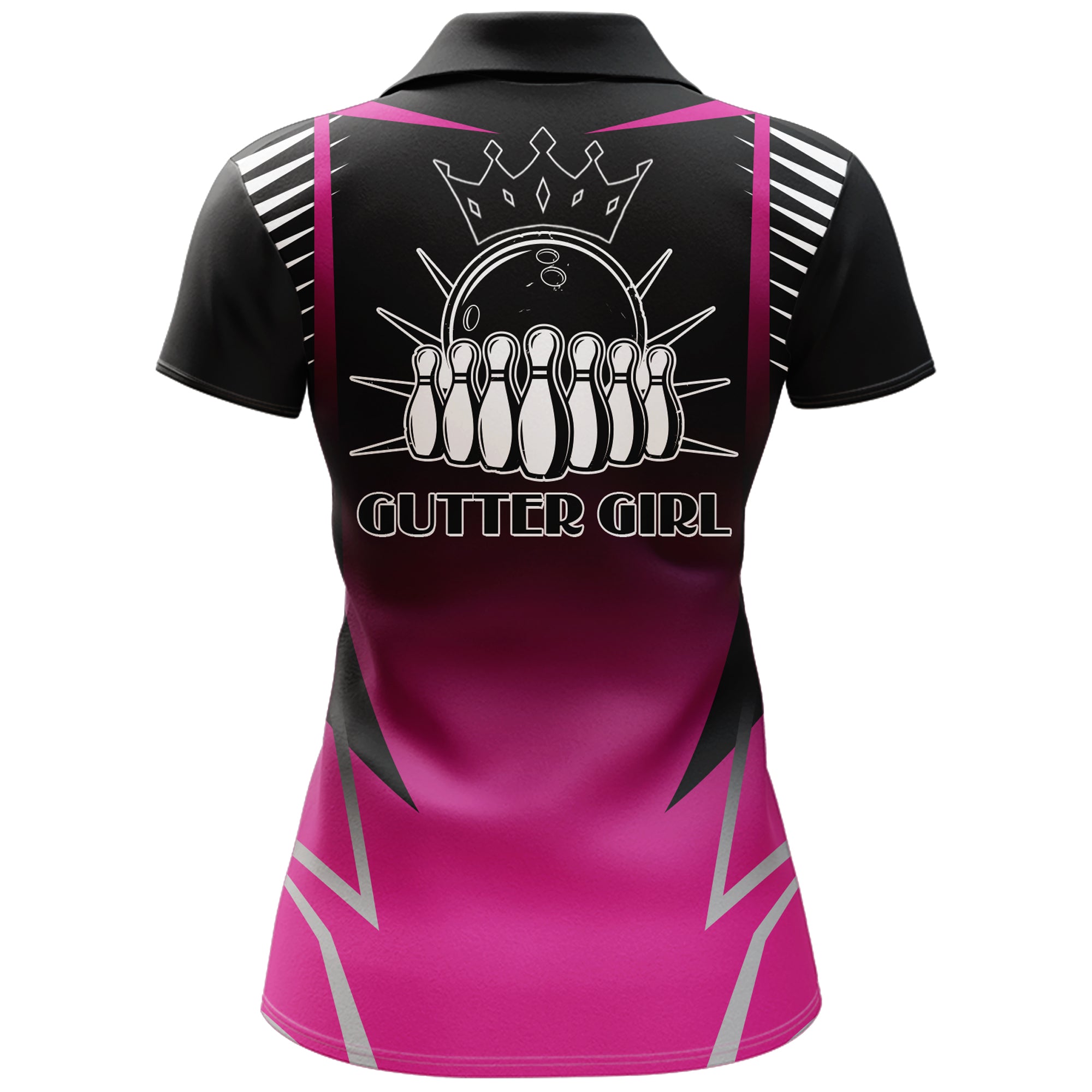 Custom Bowling Shirt for Women, Gutter Girl Pink Polo Bowling Shirt Ladies Bowling Jersey with Name NBP154