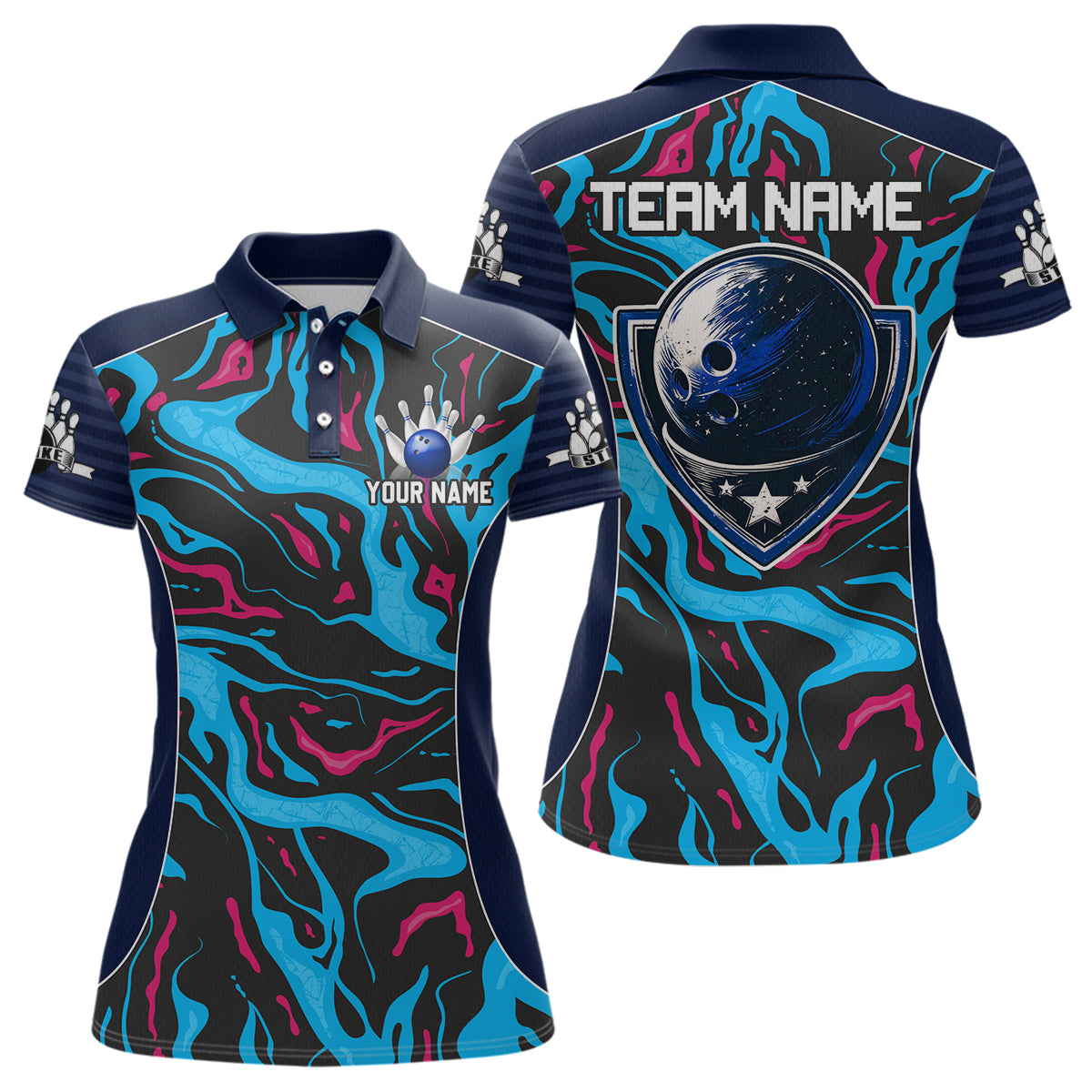 Custom Camo Pink & Teal Bowling Jersey Bowling Team League Polo Shirt for Men Women QZT665