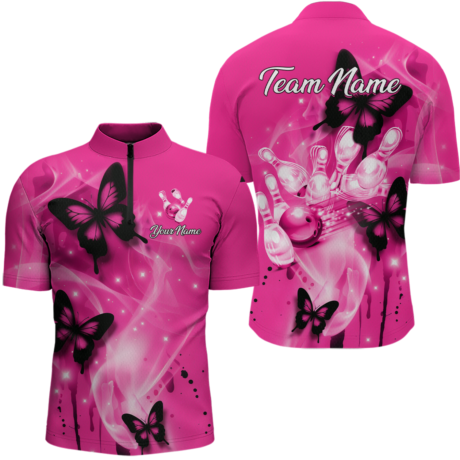 Custom Pink Butterflies Bowling Shirts for Men Women Team MBL120