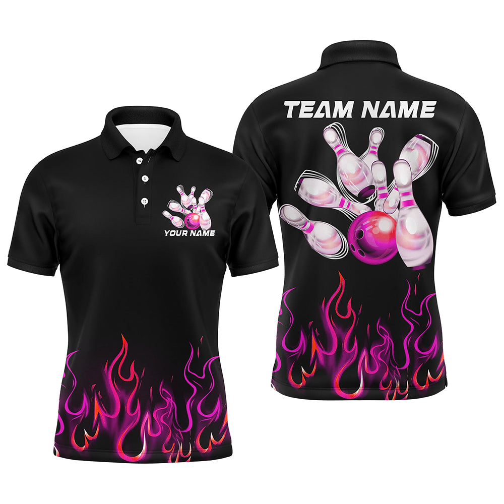 Custom Pink Flame Bowling Shirts For Men, Personalized Bowling Team Shirts IPHW7379