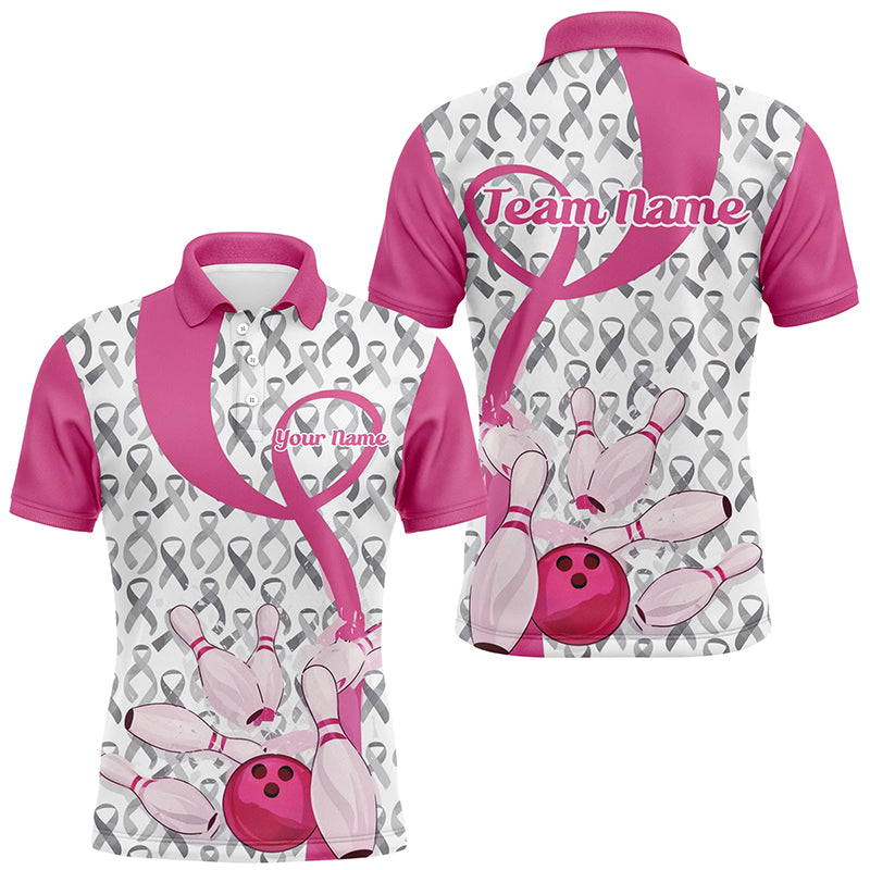 Custom Pink Ribbon Breast Cancer Bowling Shirts For Men, Breast Cancer Bowling Jersey IPHW7513