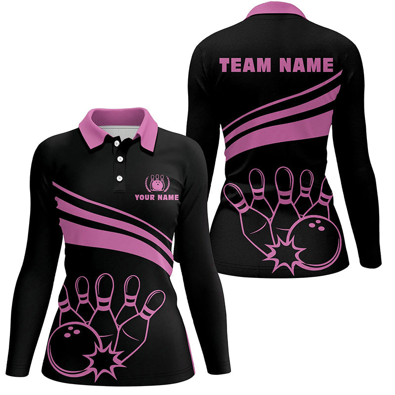 Personalized polo bowling shirts for women, custom black womens bowling shirts team bowl jersey | Pink NQS6923