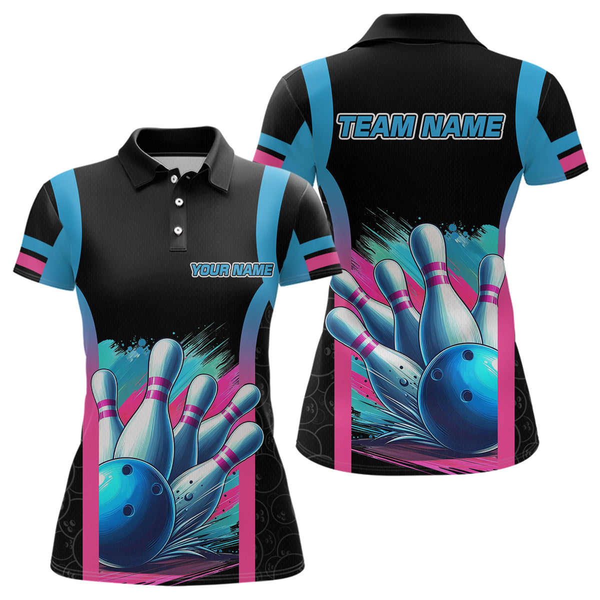 Pink&Blue Bowling Shirt for Men Women Team Bowling Jersey Bowling Polo & 1/4 Zip MBL57