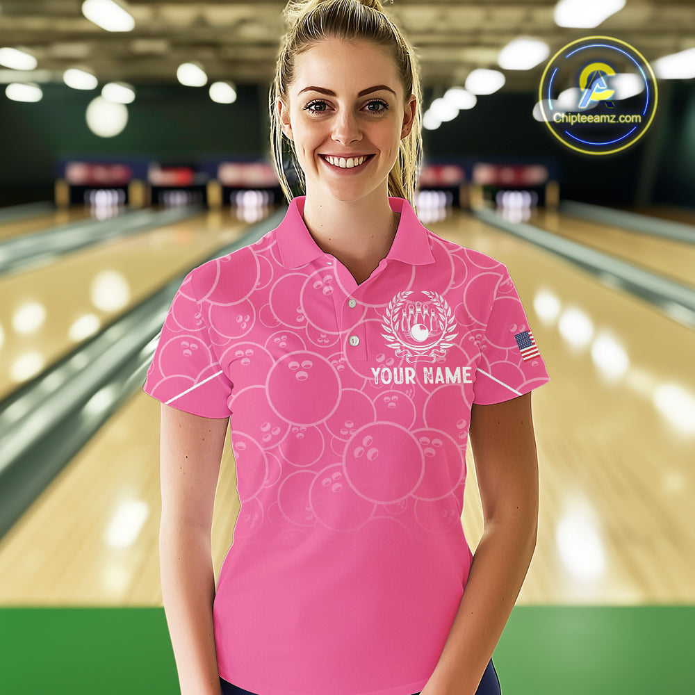 Pink bowling camo Womens bowling shirts Custom American flag patriotic bowling team league jerseys NQS10714