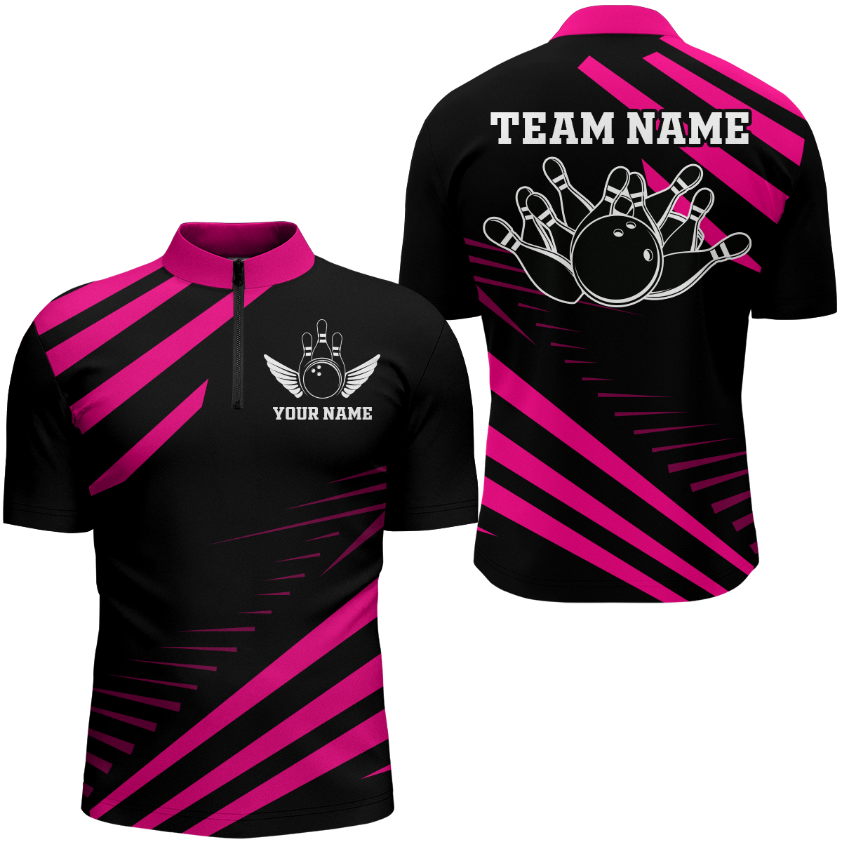 Pink Bowling Jersey Men And Women Custom Bowling Team Shirts Unisex Bowling Polo Quarter-zip CP26