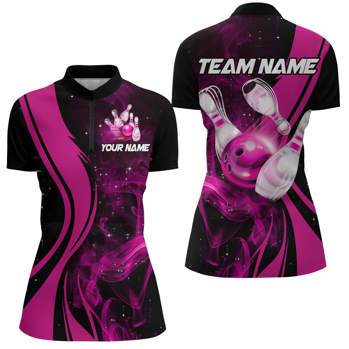 Pink Bowling Shirt Personalized Men & Women Bowling Team Jersey Bowling 1/4 Zip Shirts BDT570