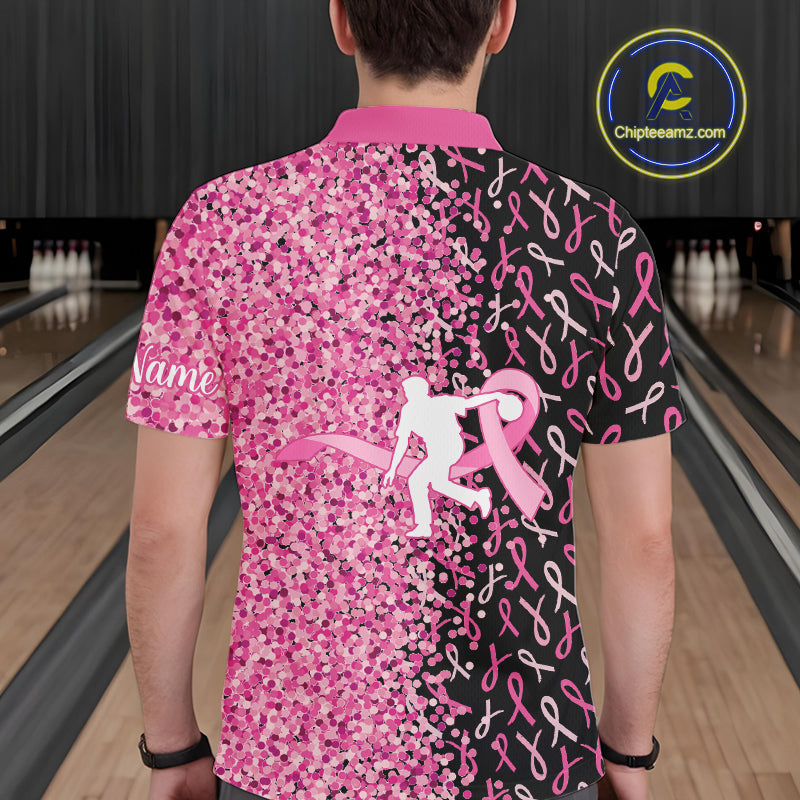 Pink glitter ribbon black Bowling Shirts For Men Custom Breast cancer bowling shirts gift for bowlers NQS10180