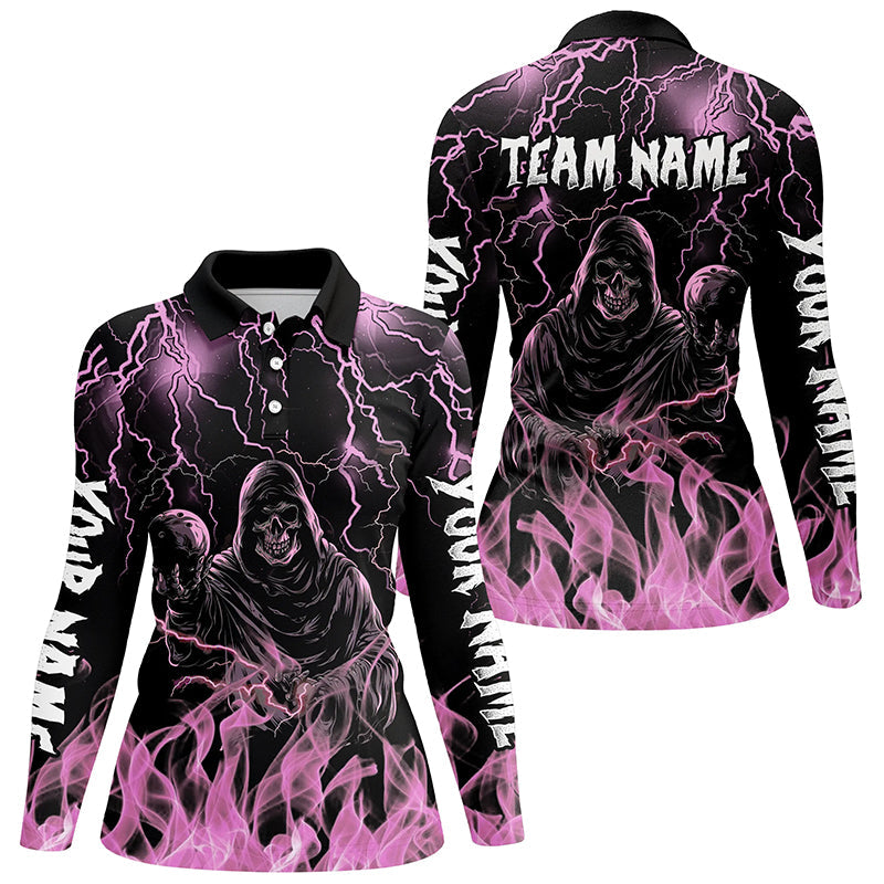 Pink lightning thunder Skull Flame Bowling Shirts For Women custom bowling team league jerseys NQS8008