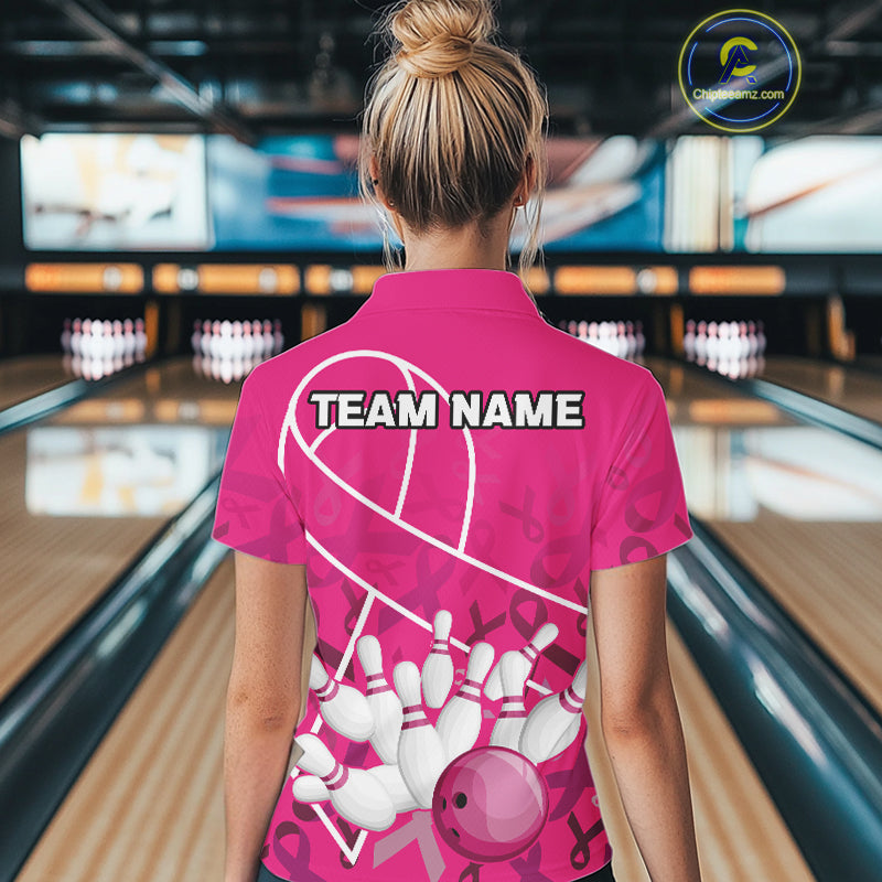 Pink ribbon pattern breast cancer awareness Bowling Shirts For Women Custom team bowling jerseys NQS10190