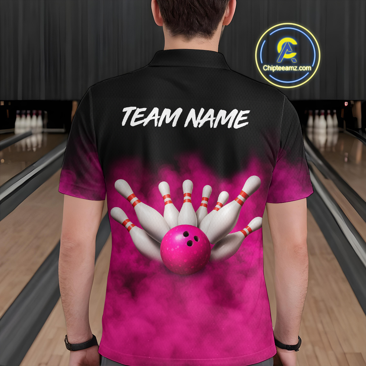 Pink Smoke Bowling Shirts for Men Women Team Personalized Bowling Polo and Quarter Zip MBL130